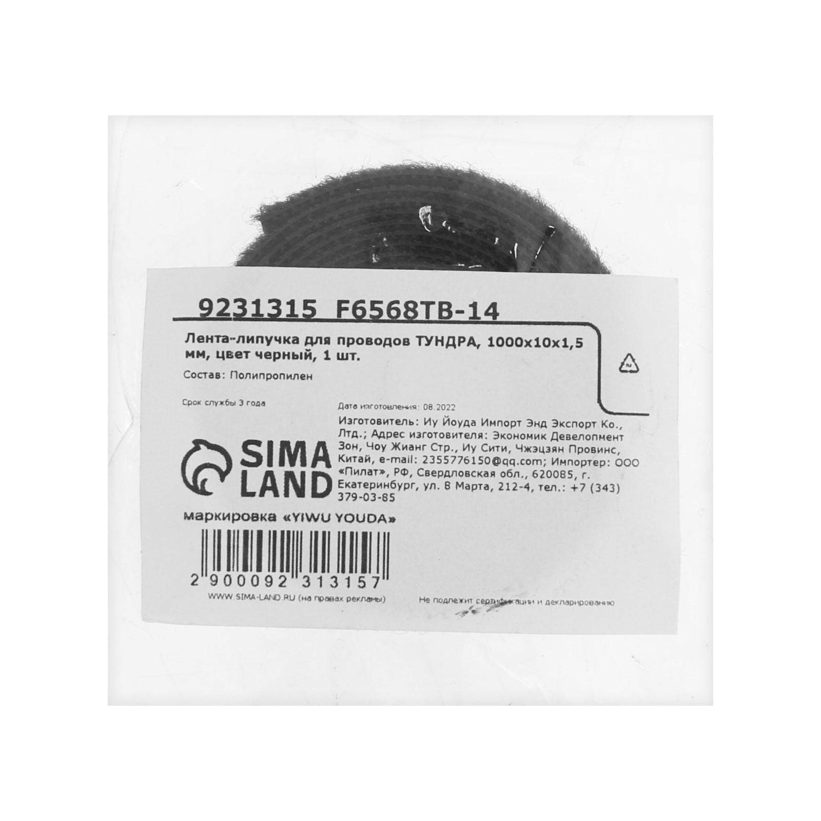 Лента-липучка для проводов 1000Х10Х1,5 мм ТУНДРА, цвет черный, 1 шт.