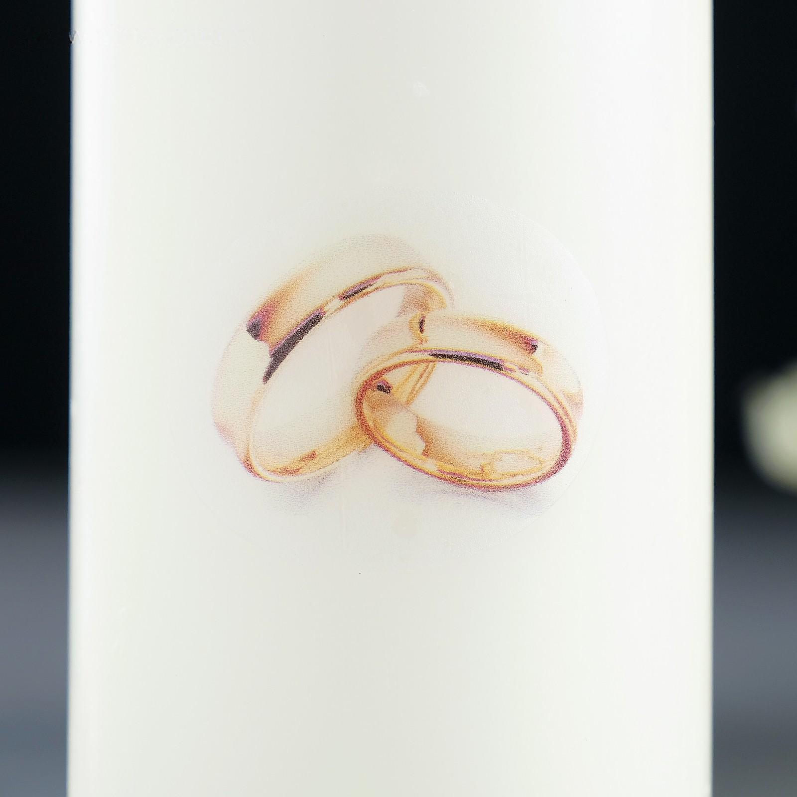Свеча-цилиндр свадебная "Обручальные кольца", 5х9,5 см, белая, домашний очаг, ручная работа