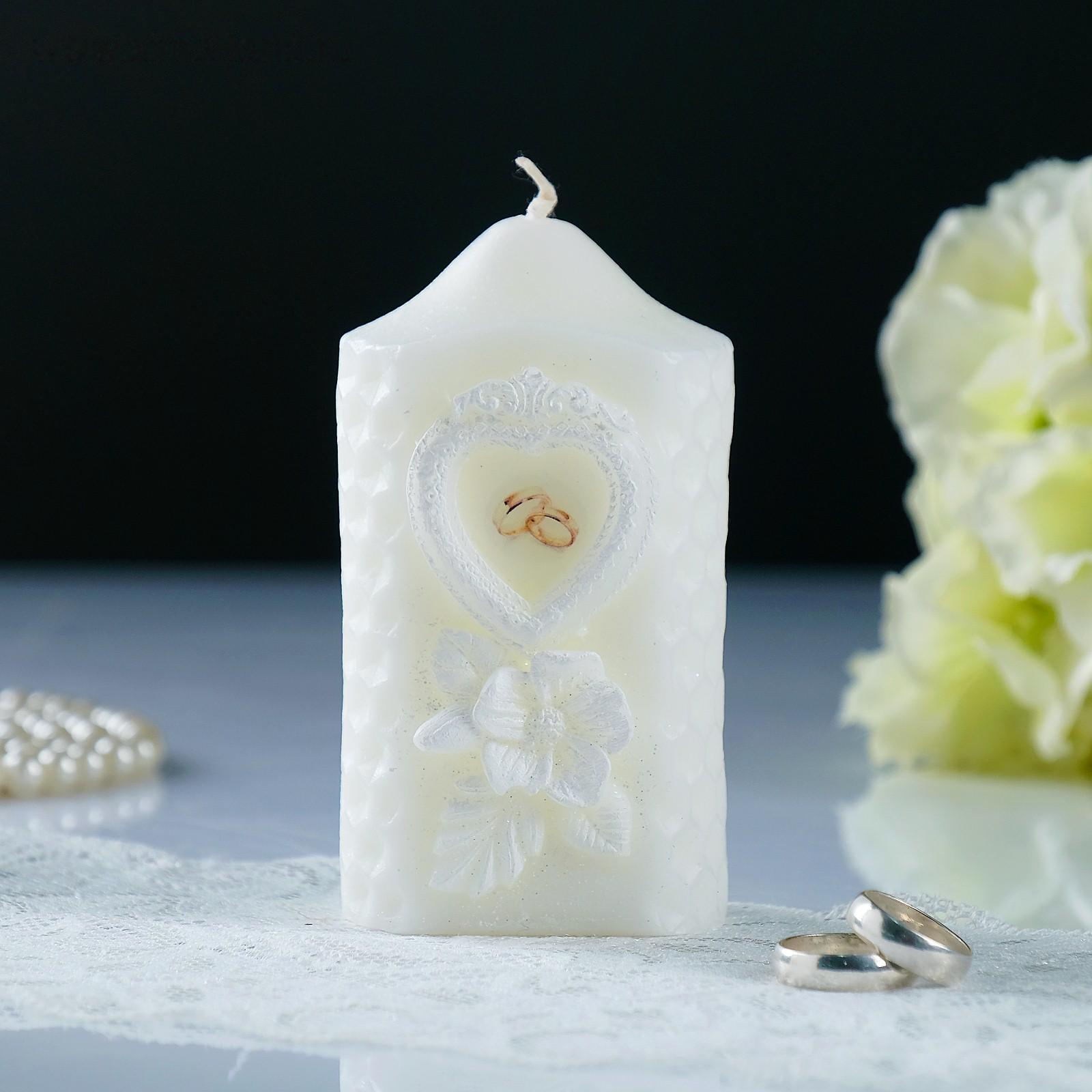 Свеча-цилиндр свадебная "Камея", белая, 6×11 см