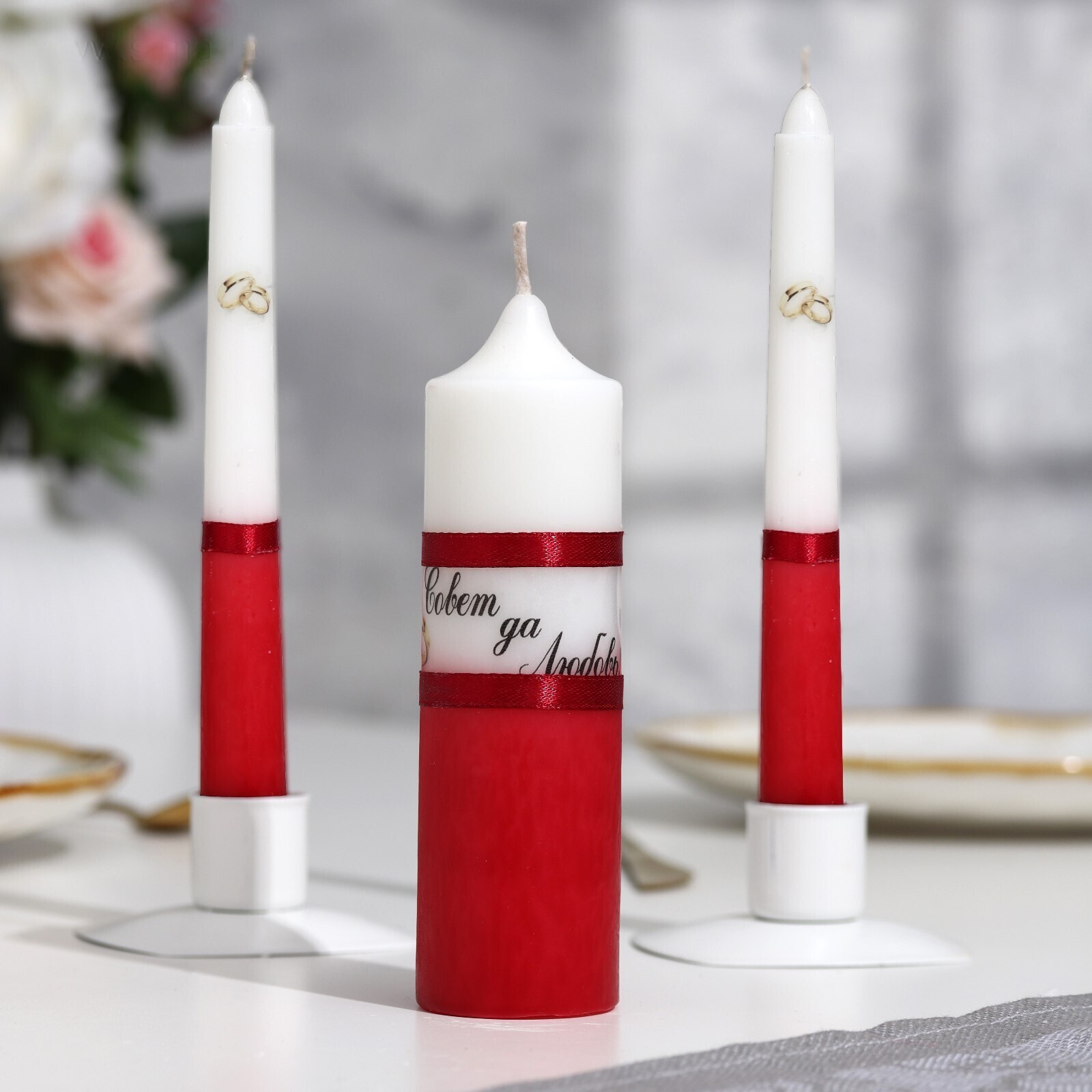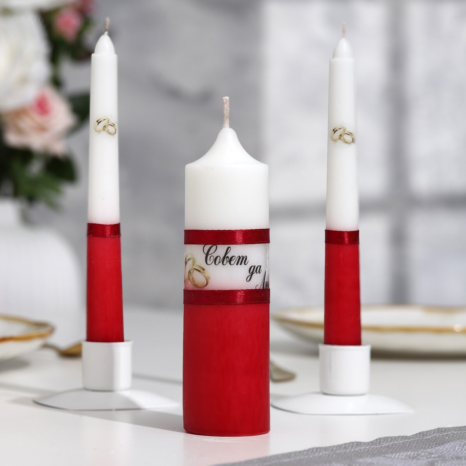 Набор свадебных свечей "Совет да любовь" бордо: родительские 1,8х17,5см; очаг 4х13,5см