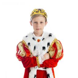Карнавальный костюм "Король", бархат, рубашка, брюки, мантия, корона, р-р М, рост 134 см