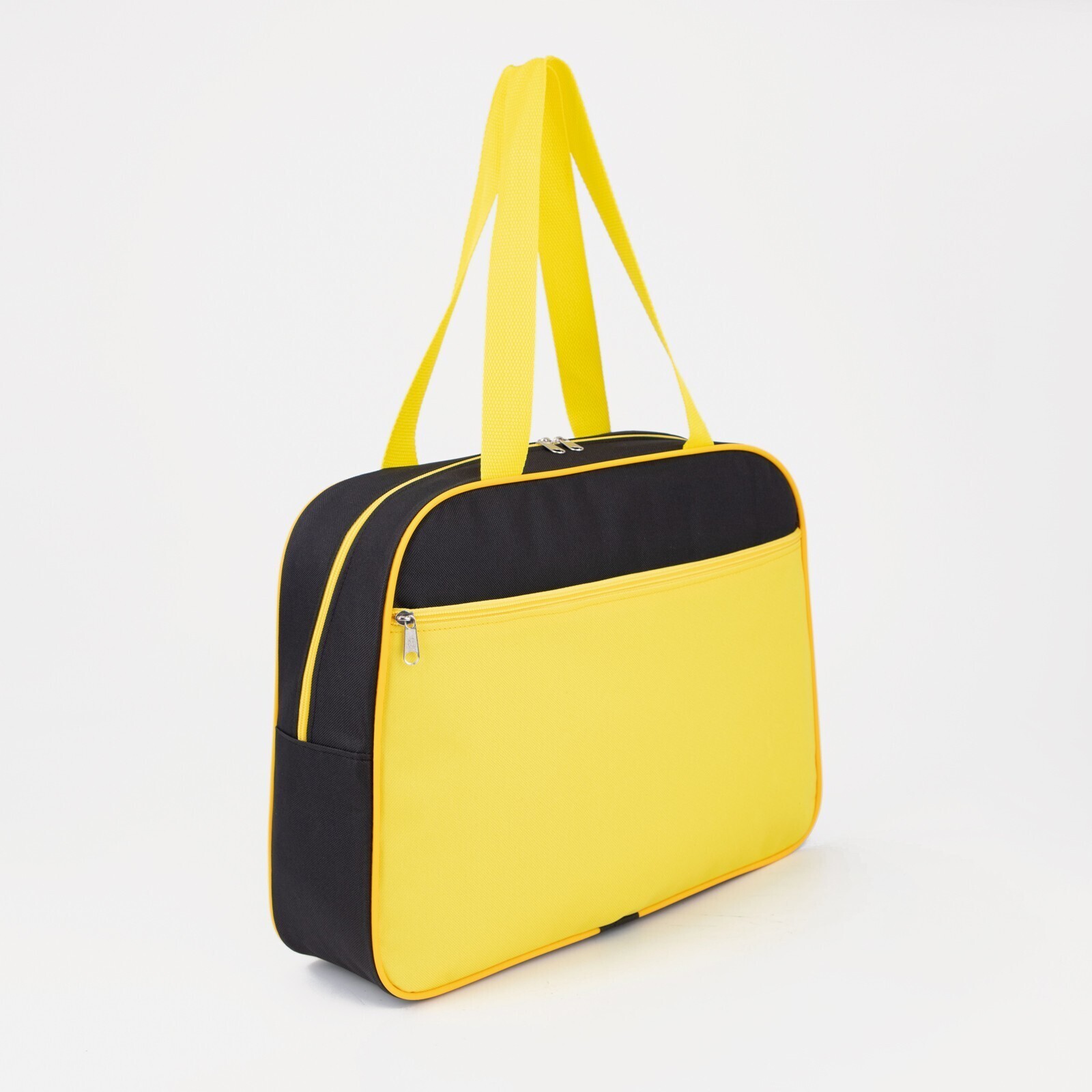 Сумка спортивная на молнии, без подкладки, наружный карман, цвет чёрный/жёлтый