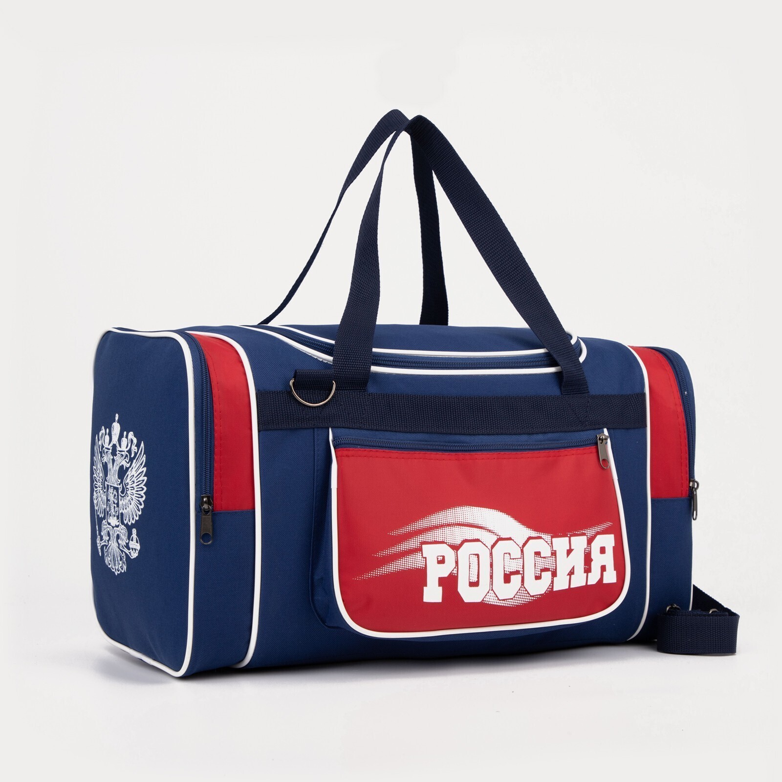 Сумка спортивная, 3 отдела на молниях, наружный карман, длинный ремень, цвет синий