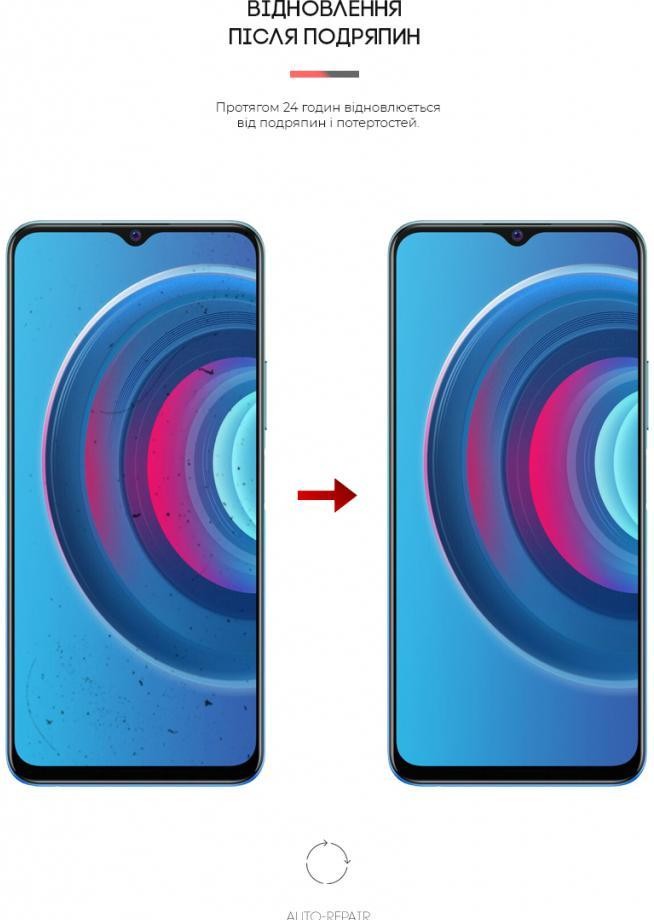 Властивість Auto-Repair — завдяки використанню гідрогелю, плівка відновлюється від косметичних подряпин і потертостей упродовж 24 годин.