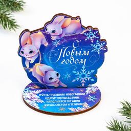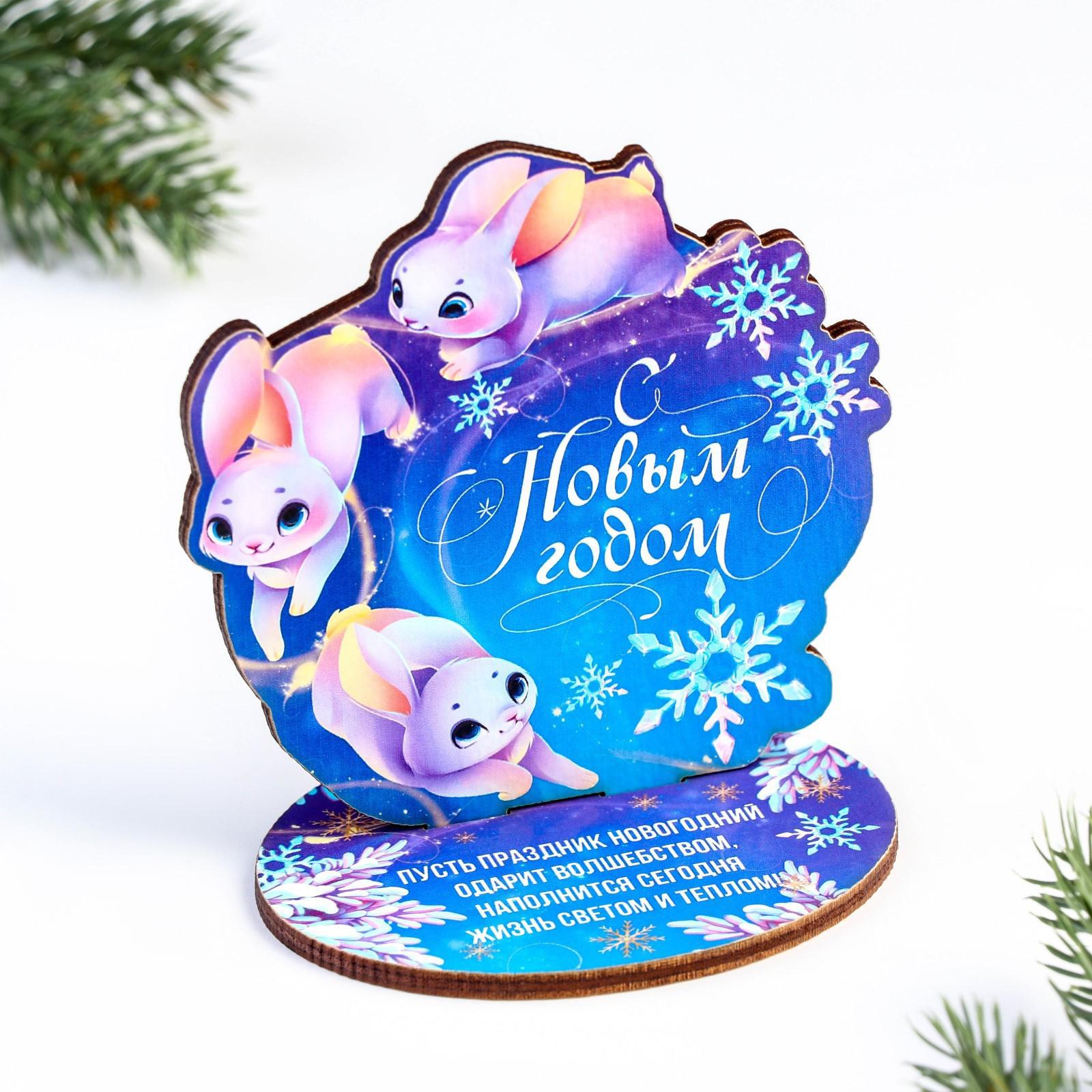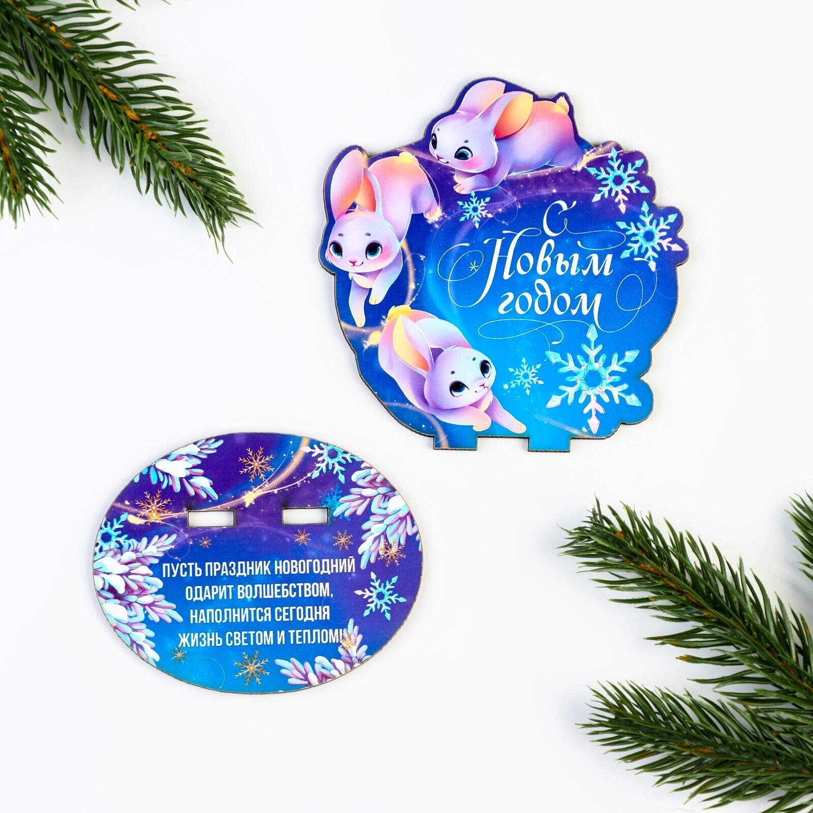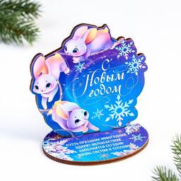 Оберег на подставке "С Новым Годом!" зайчики, снежинки, 9,5х9,6см
