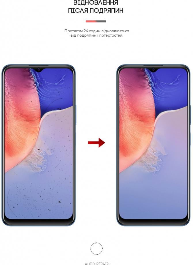 Властивість Auto-Repair — завдяки використанню гідрогелю, плівка відновлюється від косметичних подряпин і потертостей упродовж 24 годин.