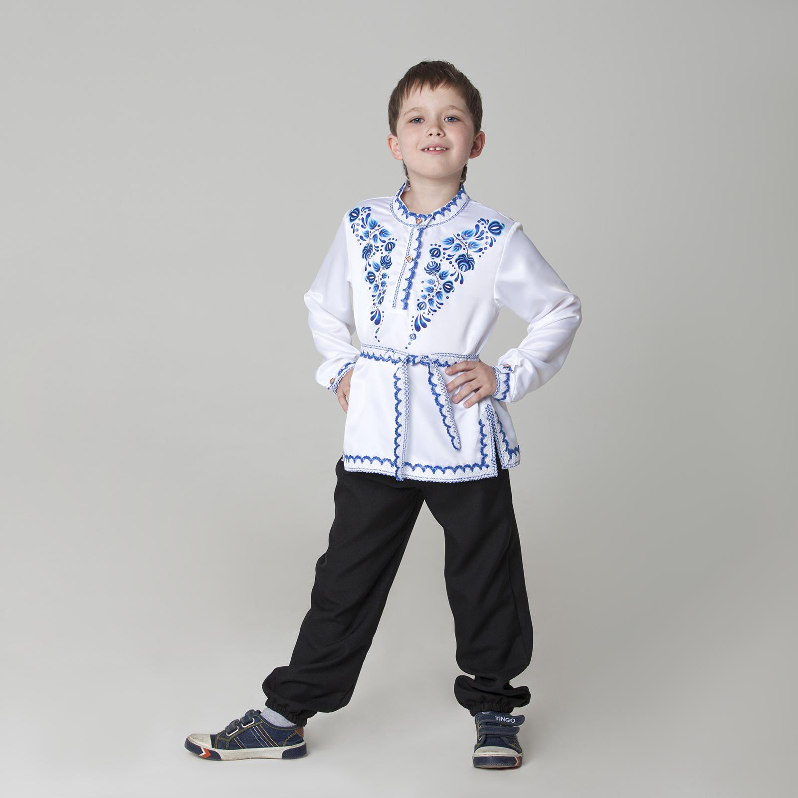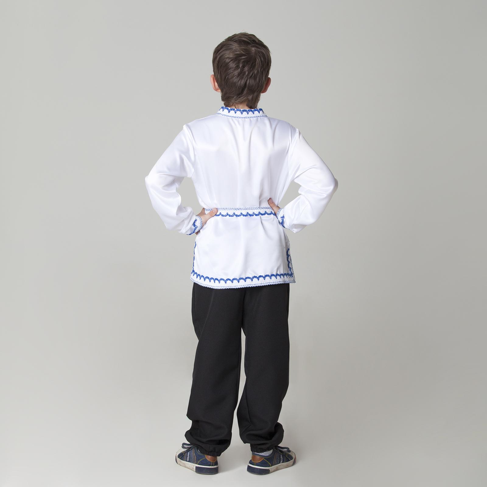 Карнавальная русская рубаха "Синие цветы", атлас, цвет белый, р-р 34, рост 140 см