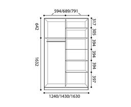 Стандартная комплектация шкафа-купе серии «Престиж» 2-х дверного: 6 полок и 1 штанга