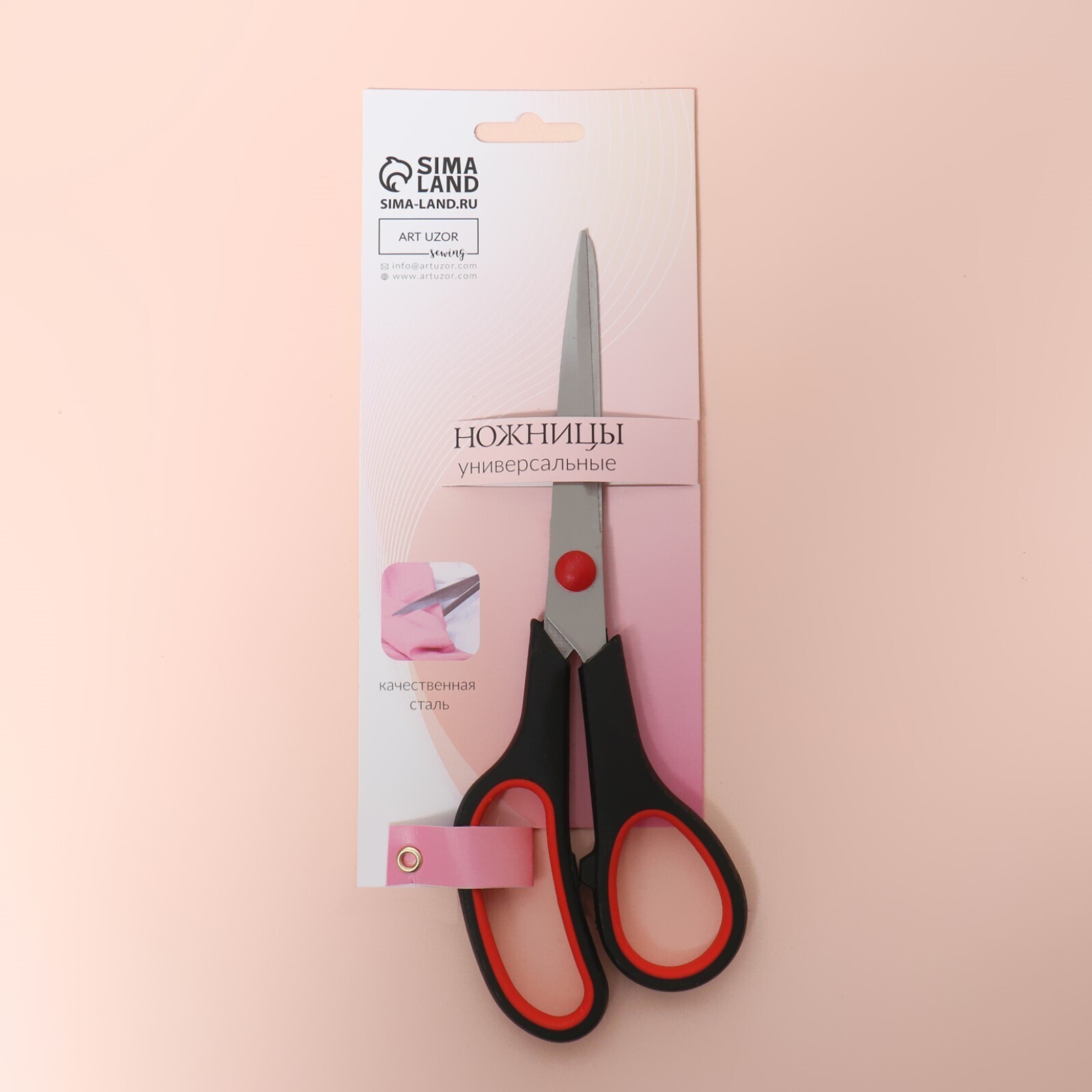 Ножницы универсальные, скошенное лезвие, 8,5", 21 см, цвет чёрный/красный