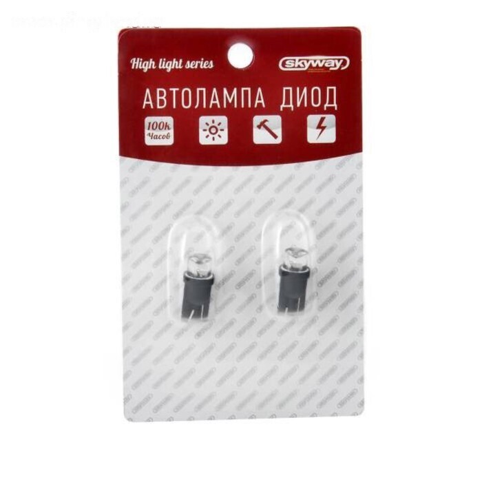 Лампа светодиодная T10(W5W)12V 1 LED EXTRA LIGHT без цоколя (разноцветная) Skyway, 2 шт, S08201137
