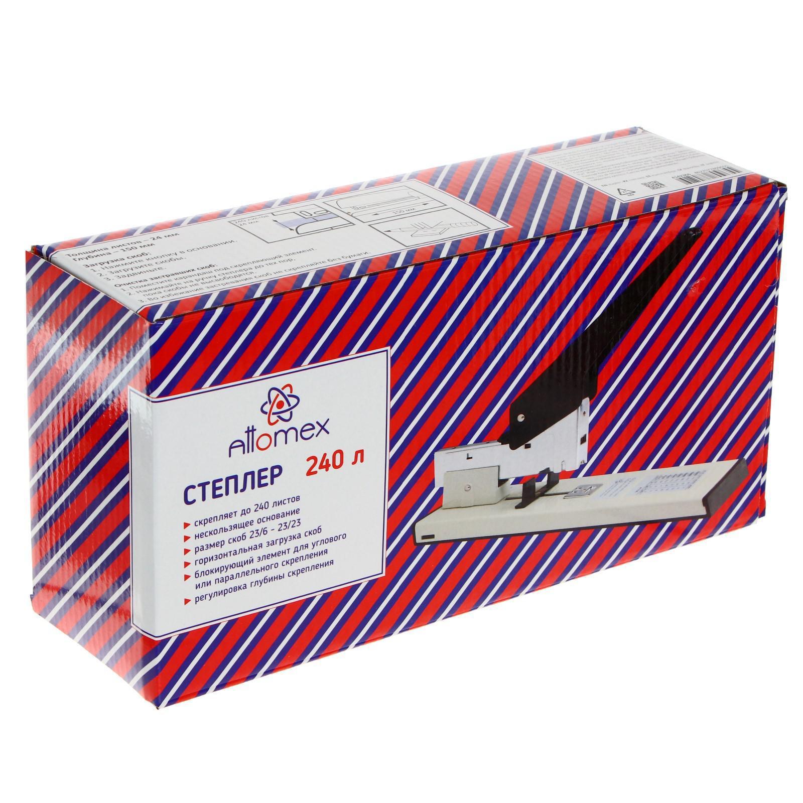 Степлер большой мощности "Attomex" 23/6-23/23 (до 240 листов, глубина скрепления 70 мм) металлический, в картонной коробке, черный.