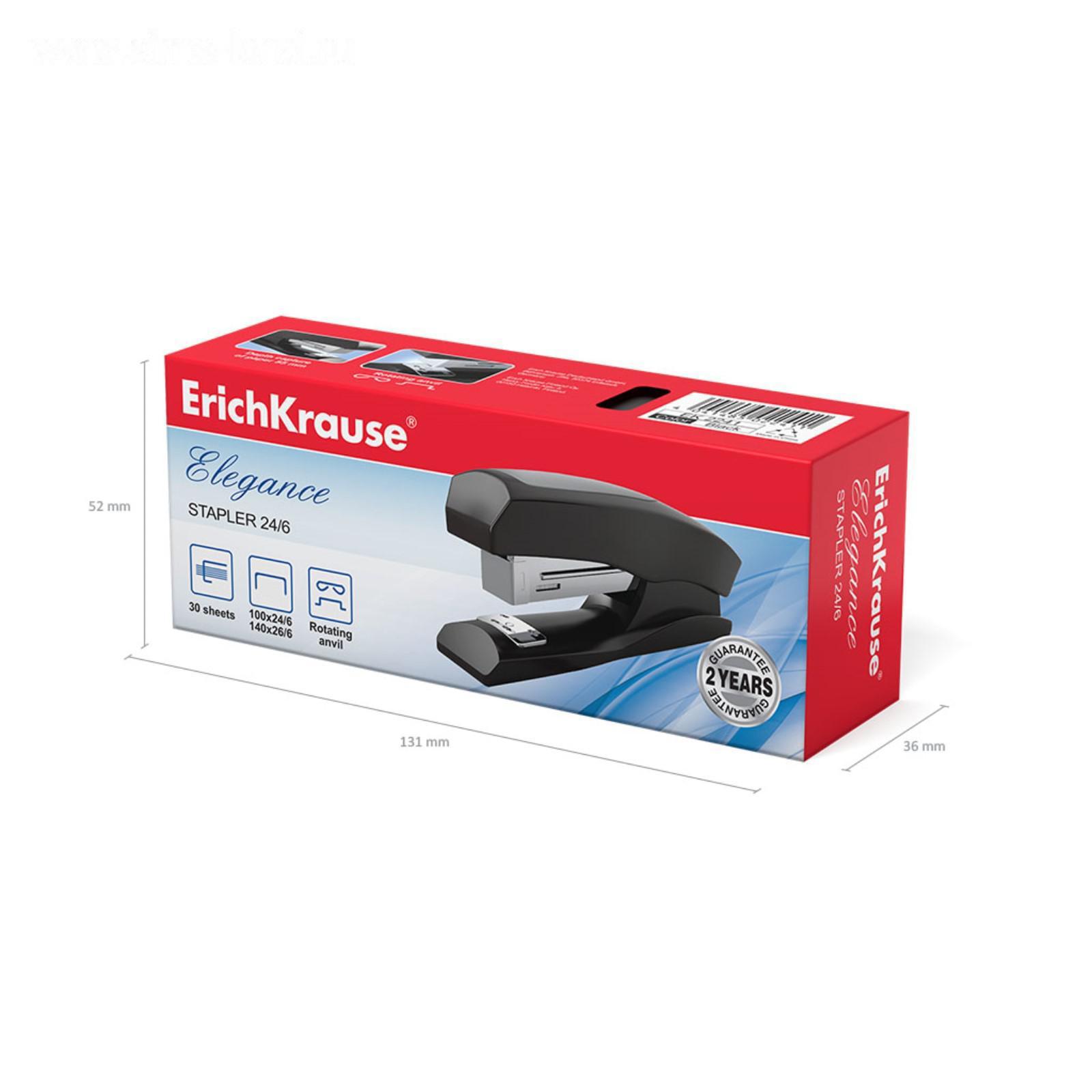 Степлер ErichKrause Elegance Half-strip №24/6 и 26/6, до 30 листов, вмещает до 100 скоб, глубина закладки бумаги до 55 мм, черный