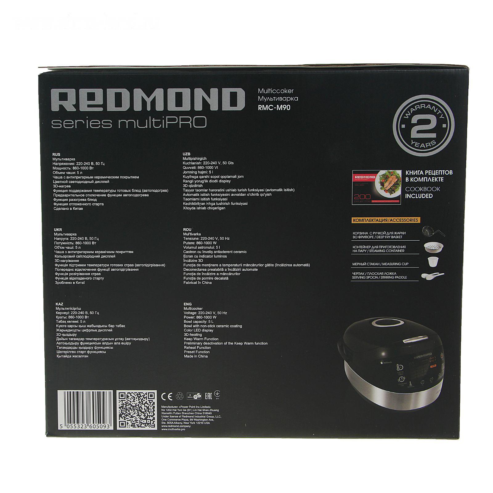 Мультиварка Redmond RMC-M90, 860-1000 Вт, 5,0 литров, цвет черный+металлик