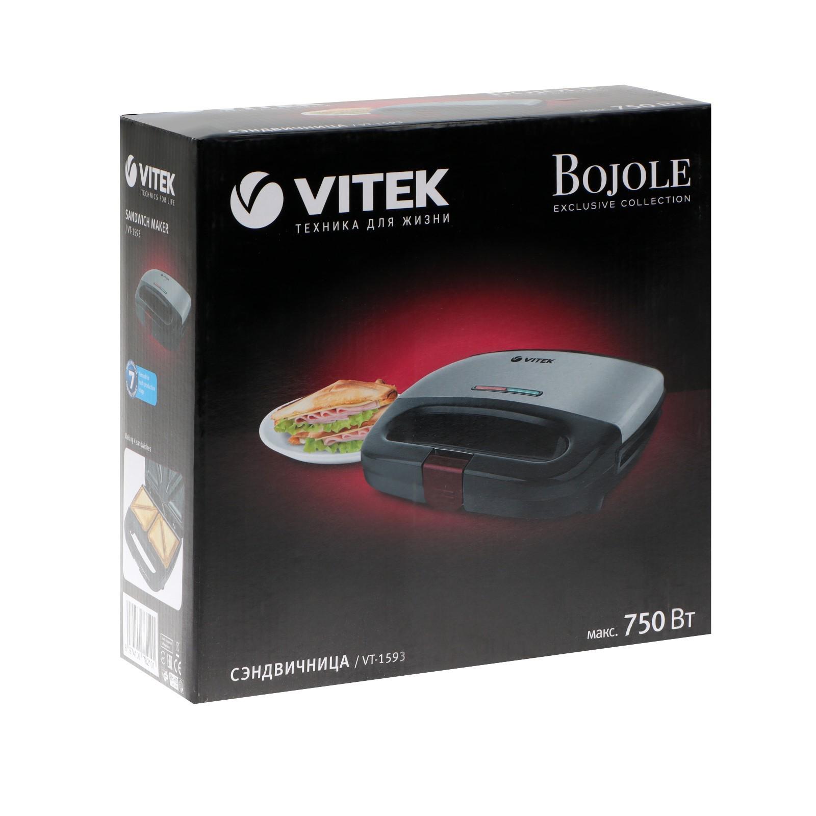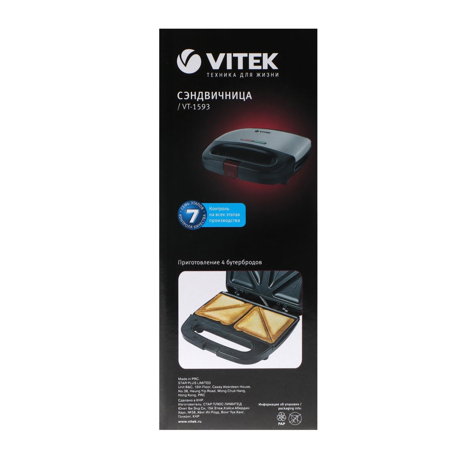 Сэндвичница Vitek VT-1593, 750 Вт, антипригарное покрытие,черно-серебристая