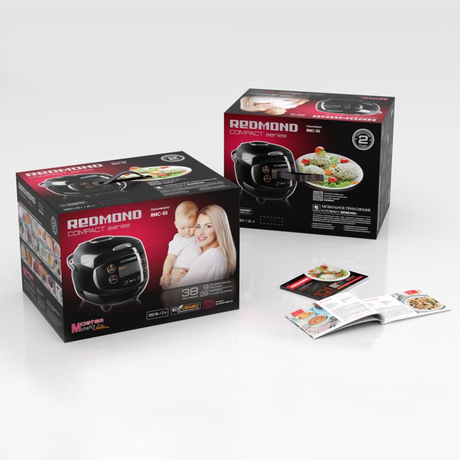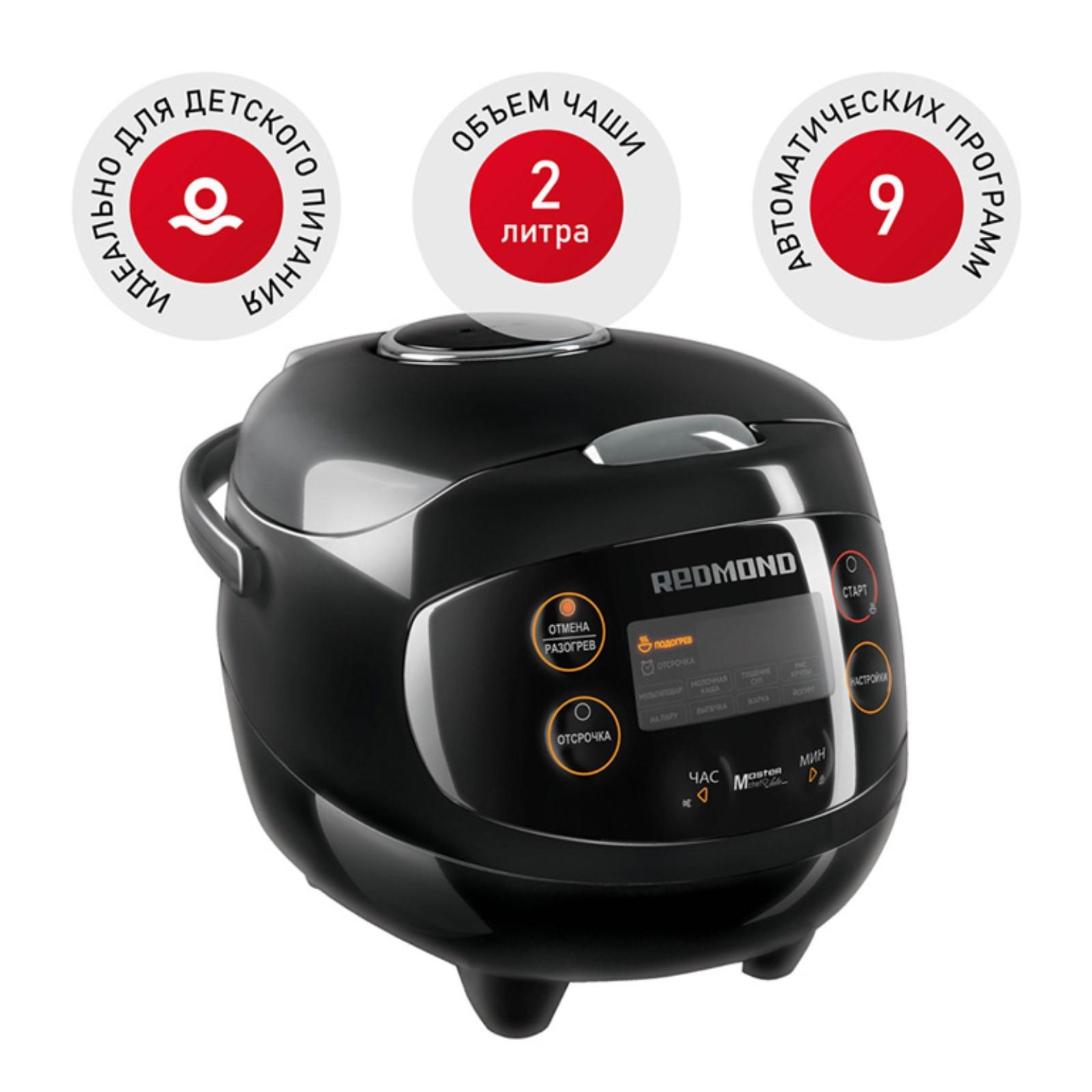 Мультиварка REDMOND RMC-03, 350 Вт, 2 л, 9 программ, керамическое покрытие, чёрная