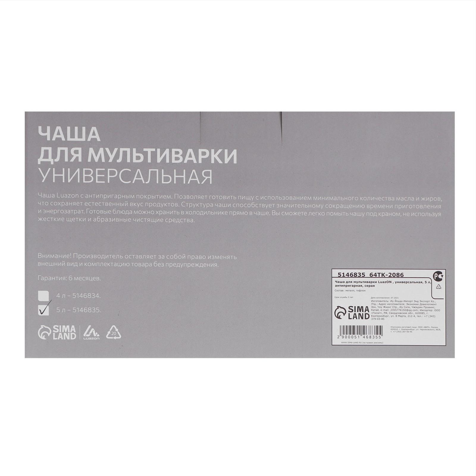 Чаша для мультиварки Luazon , универсальная, 5 л, антипригарная, серая