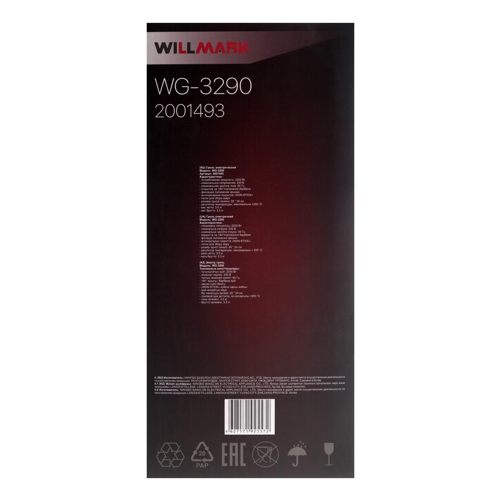 Электрогриль WILLMARK WG-3290, 2200 Вт, антипригарное покрытие, 29x24 см