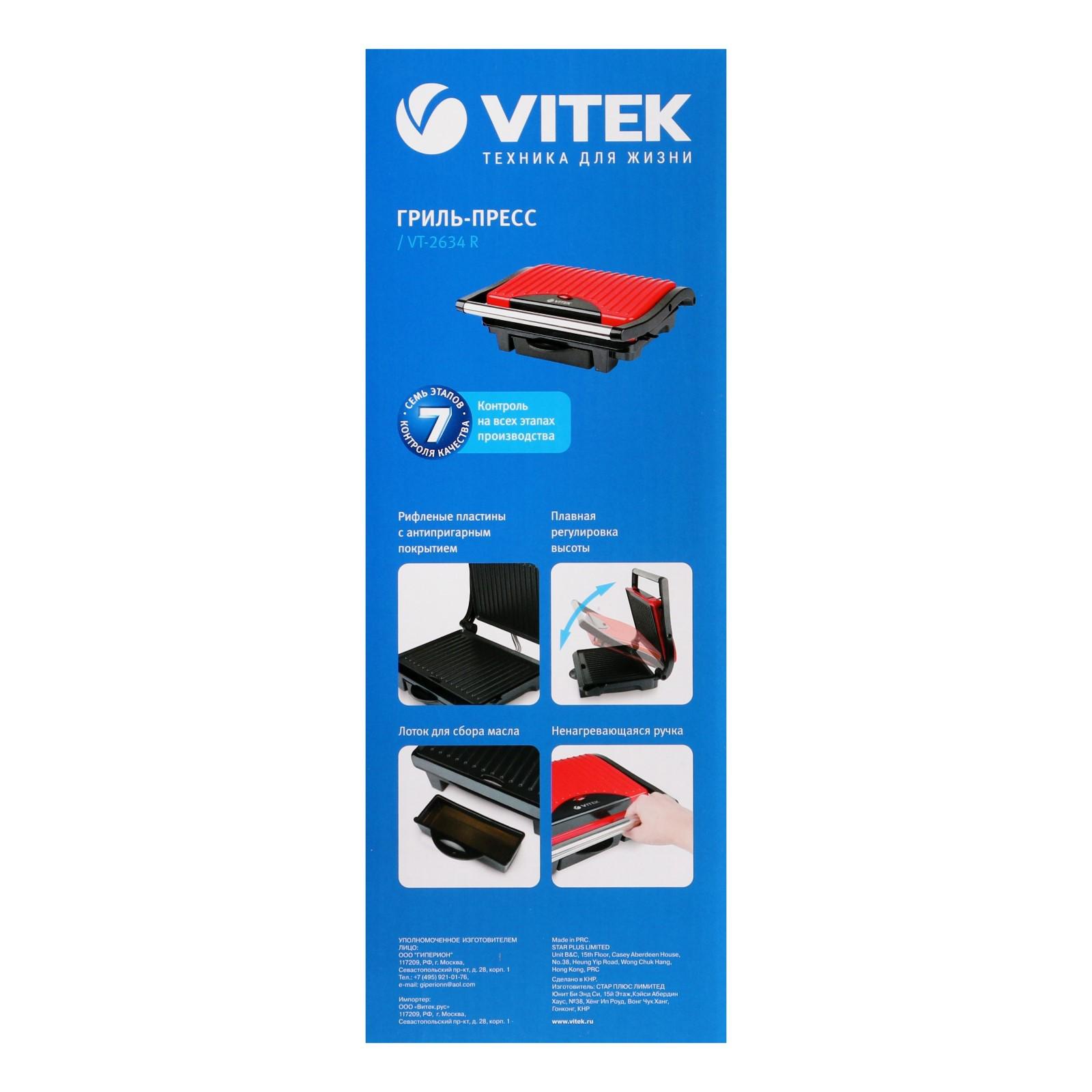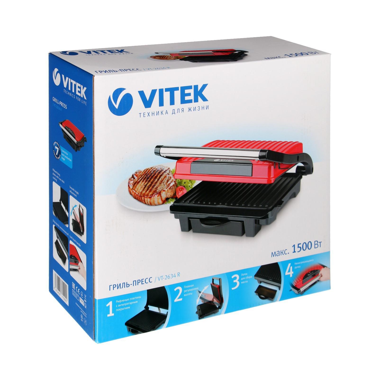 Гриль электрический Vitek VT-2634 R, 1500 Вт, антипригарное покрытие, 25х18 см, красный