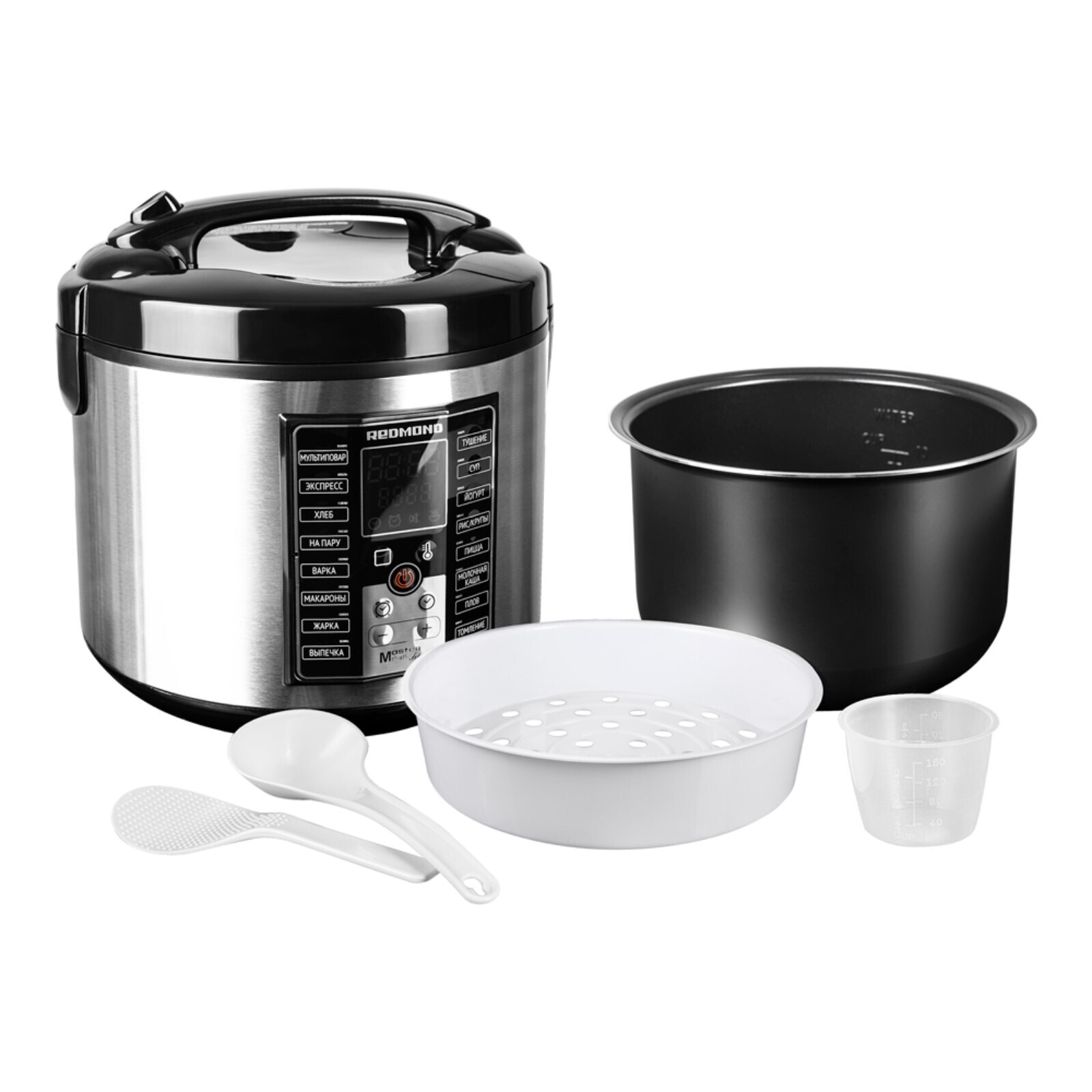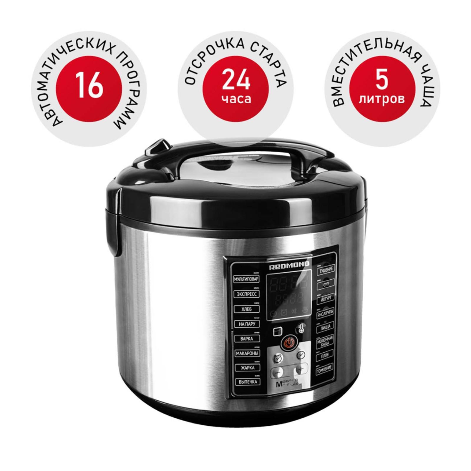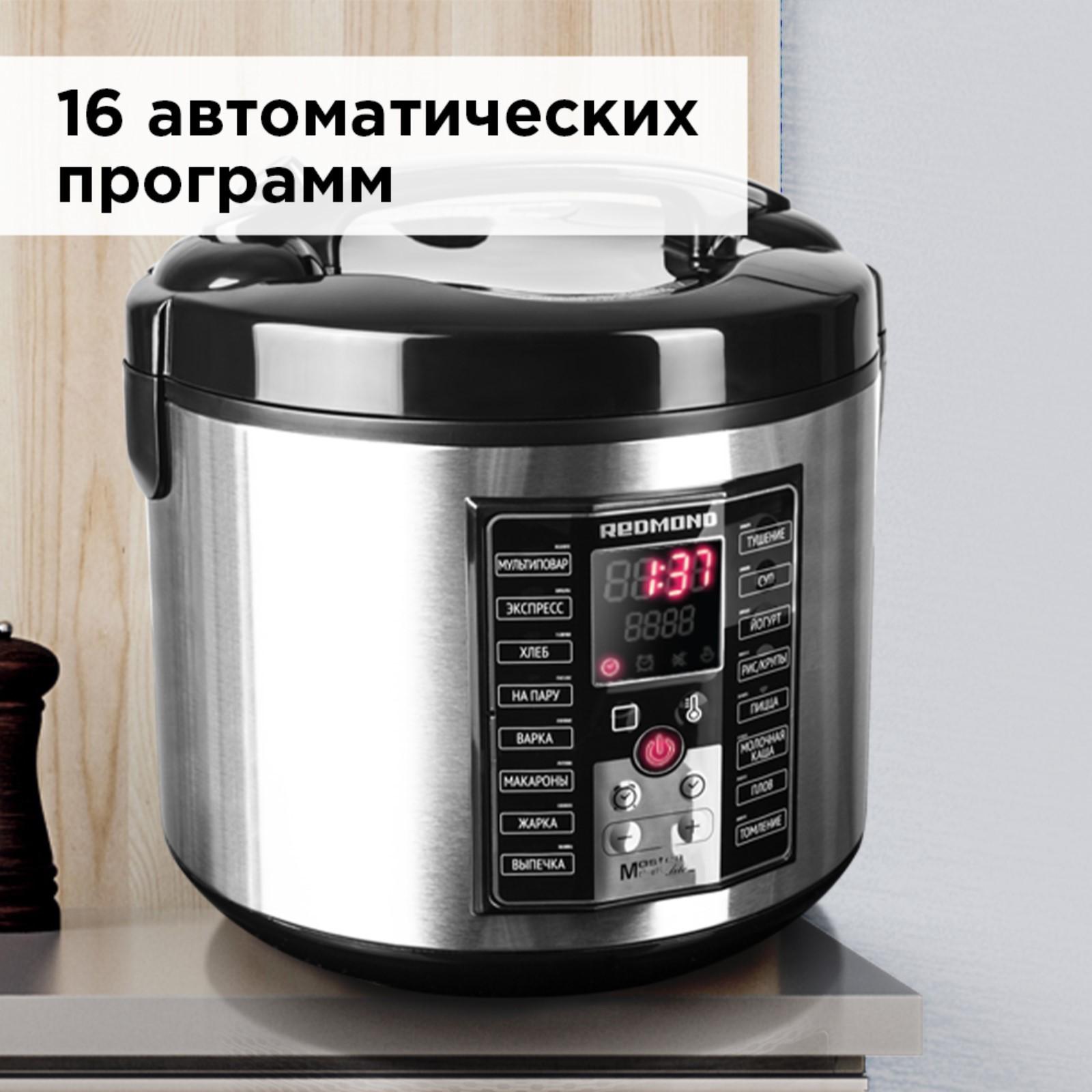 Мультиварка REDMOND RMC-M25, 860 Вт, 5 л, 16 программ, антипригарное покрытие, черная/сталь