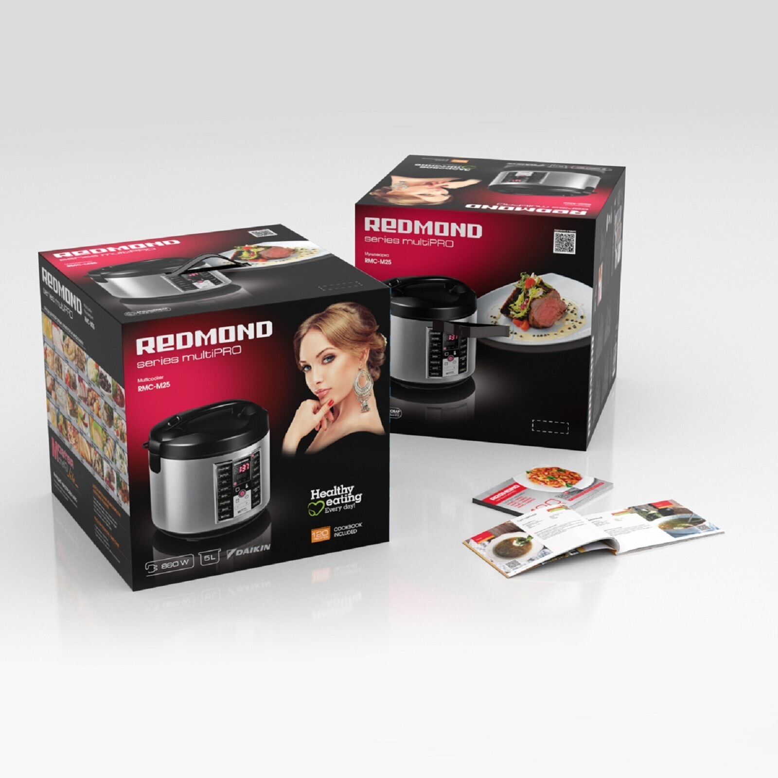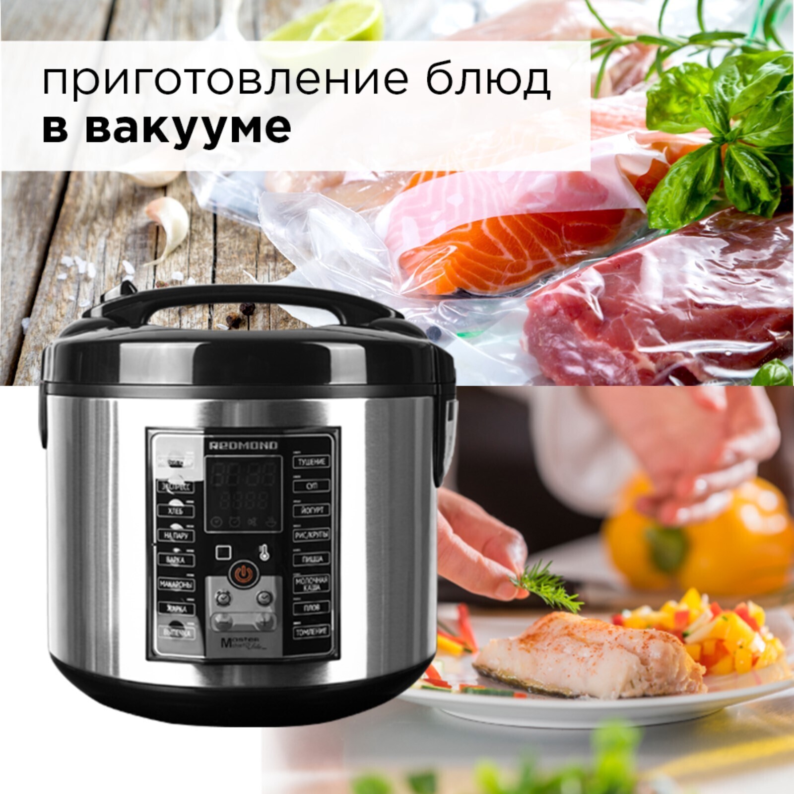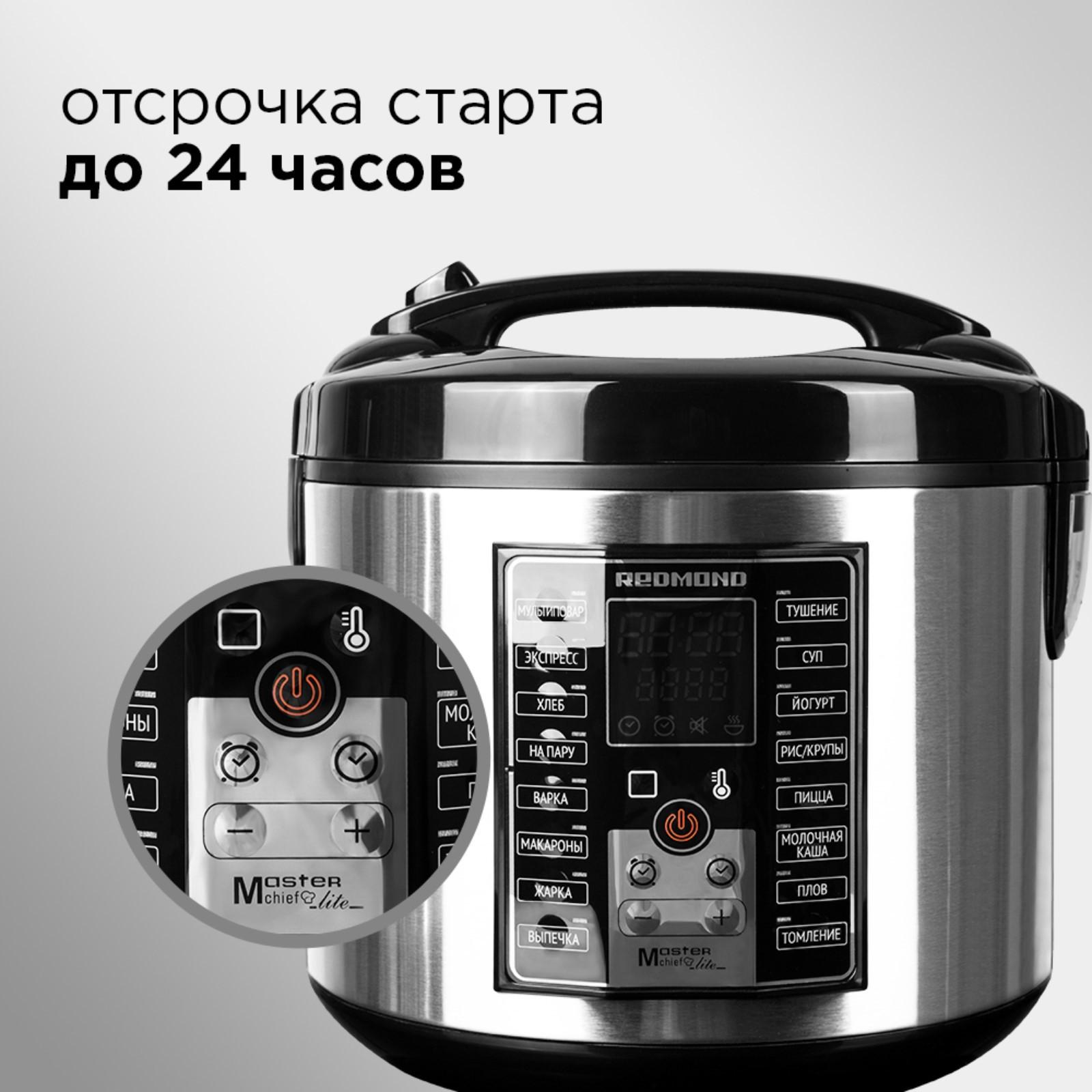 Мультиварка REDMOND RMC-M25, 860 Вт, 5 л, 16 программ, антипригарное покрытие, черная/сталь