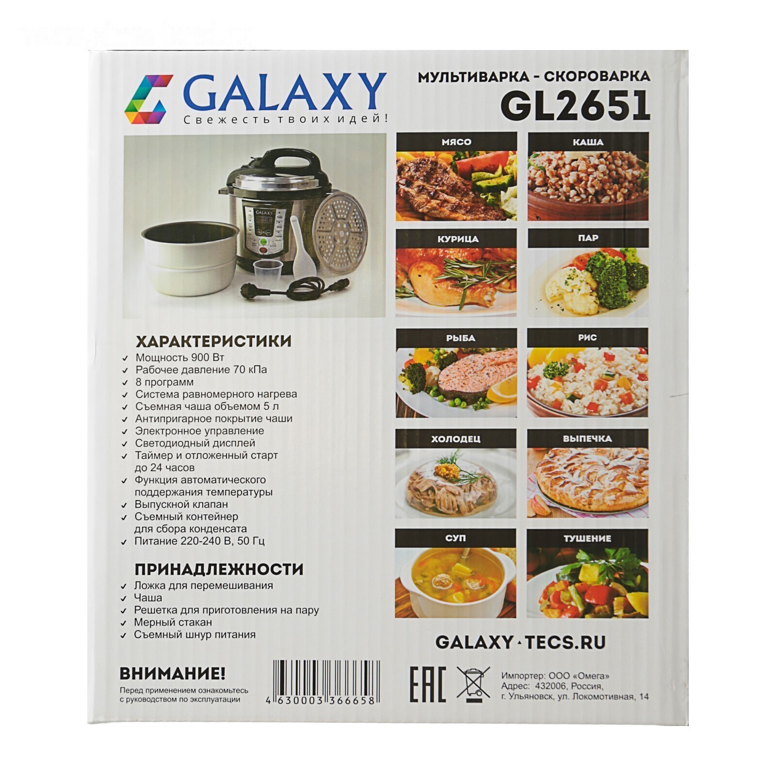 Мультиварка-скороварка Galaxy GL 2651, 900 Вт, 5 л, 8 программ, антипригарная чаша
