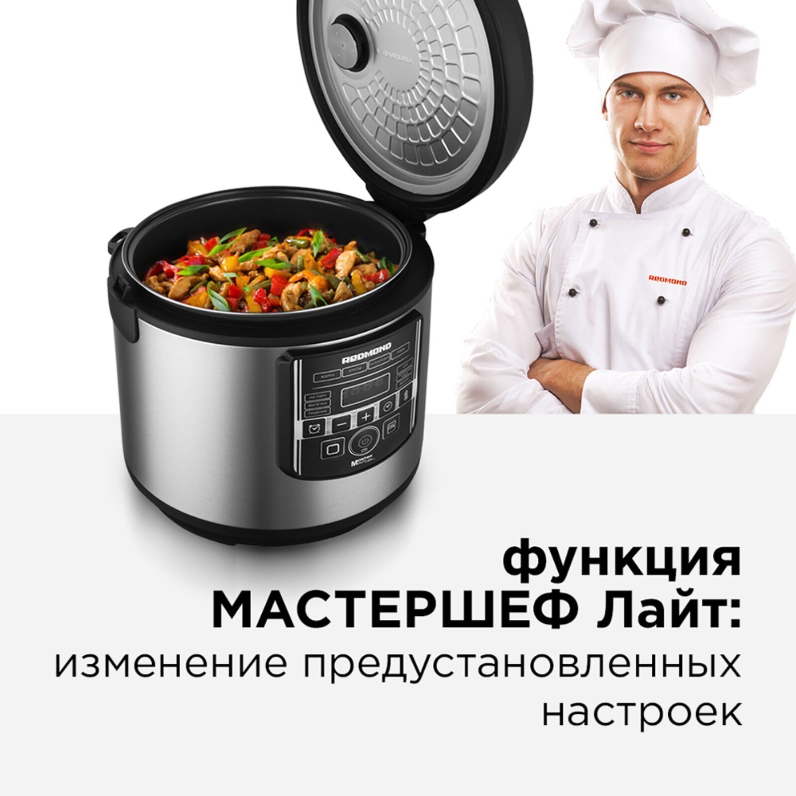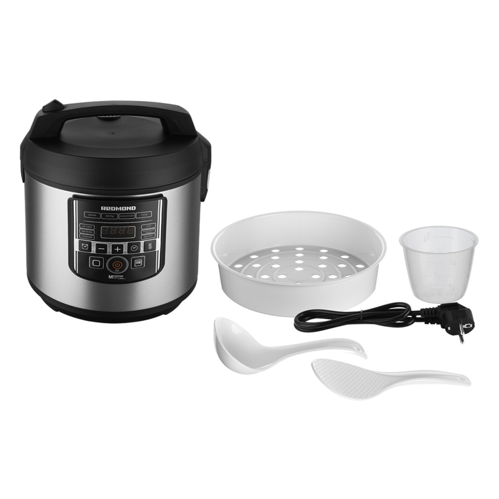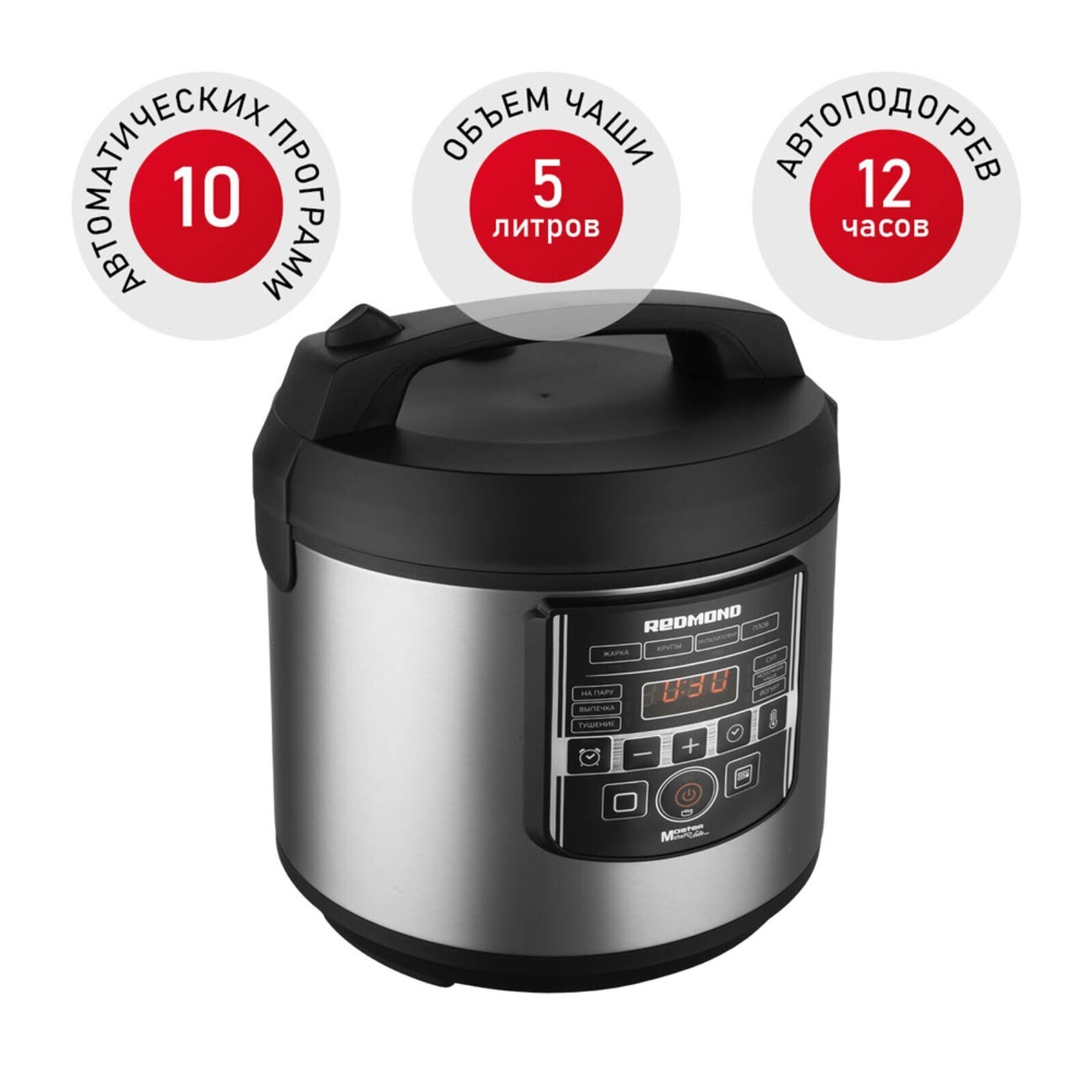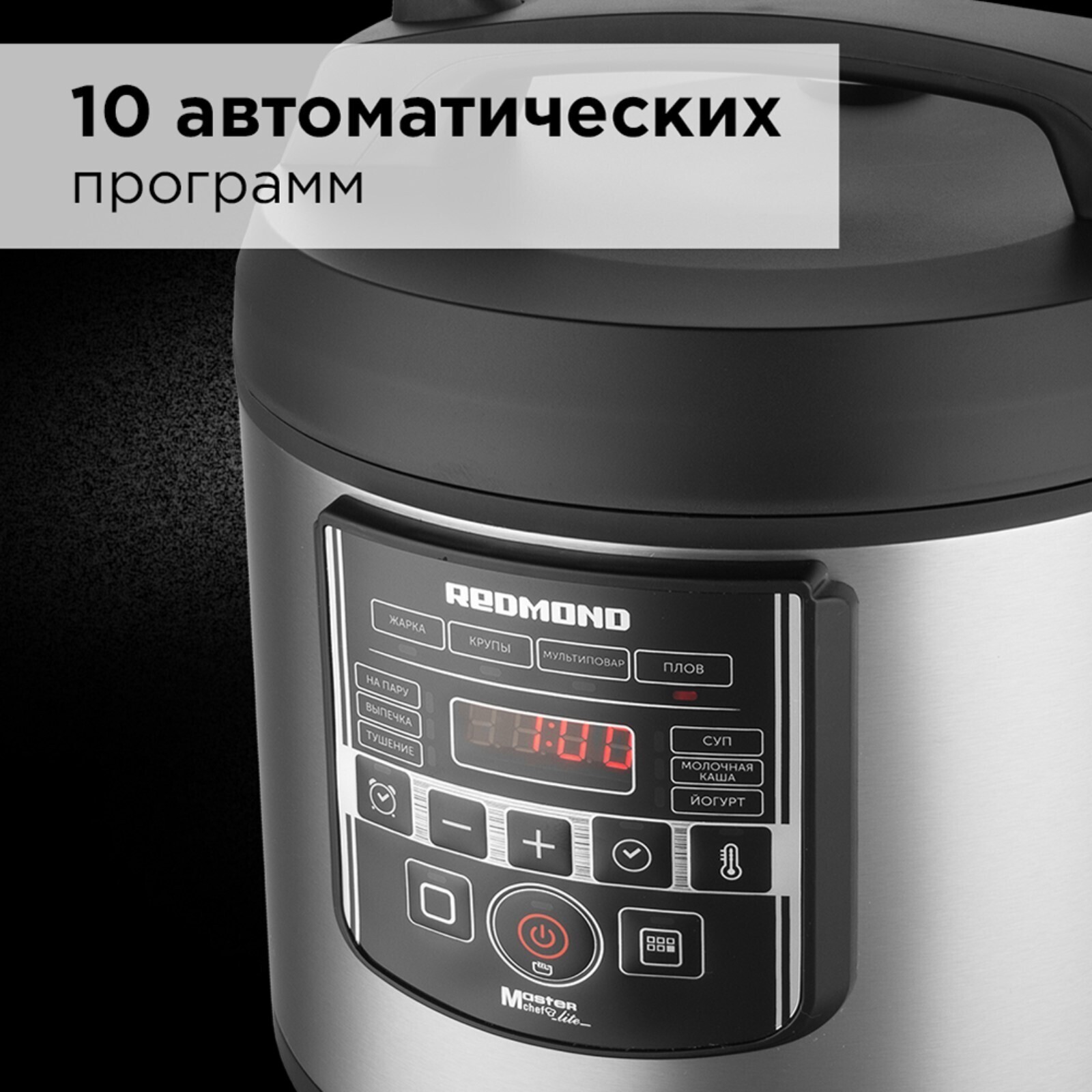 Мультиварка REDMOND RMC-M38, 860 Вт, 5 л, 10 программ, антипригарное покрытие, черная/сталь