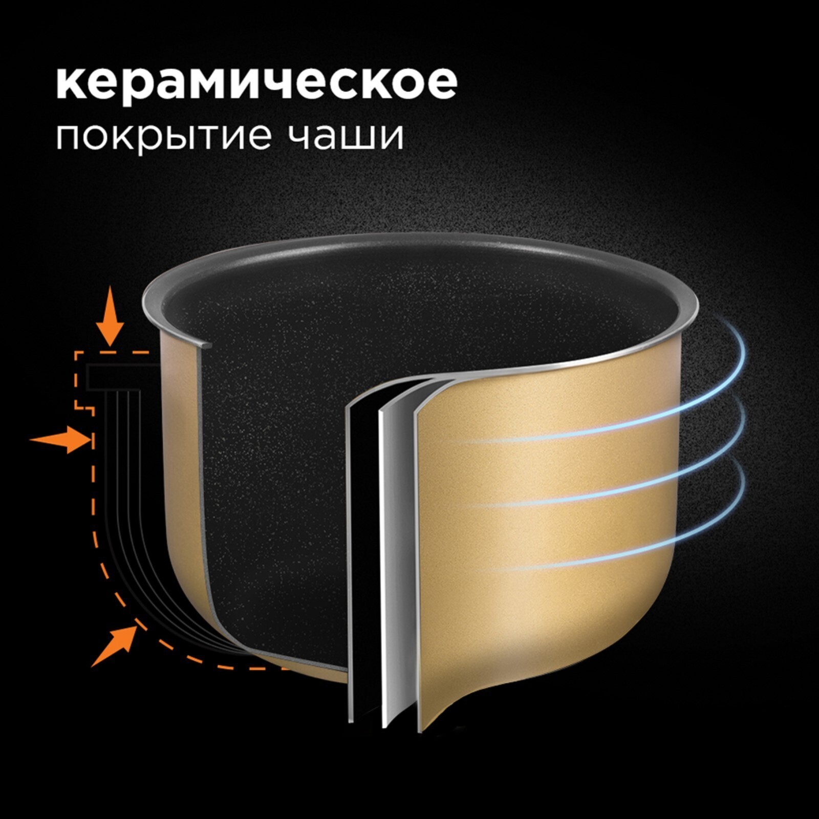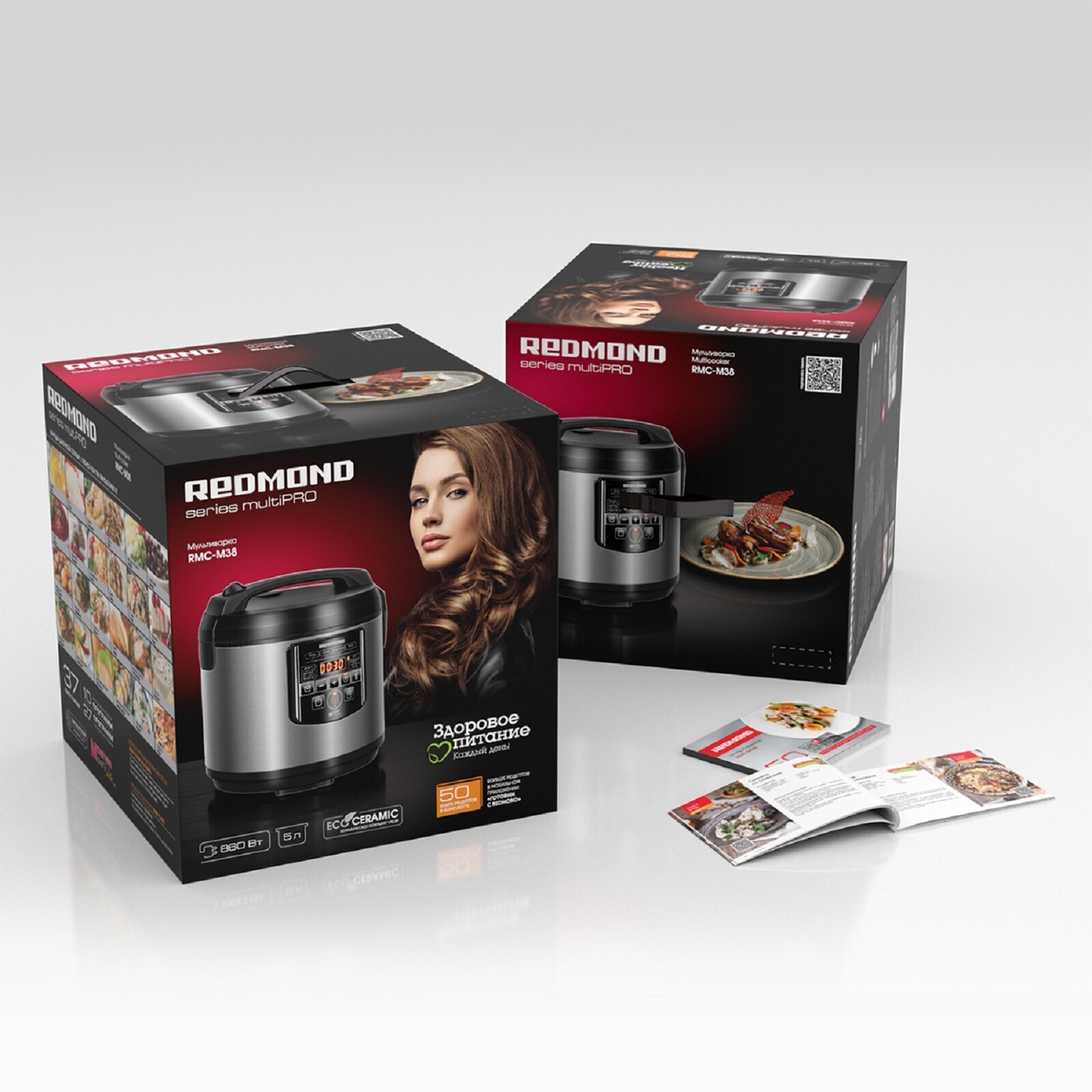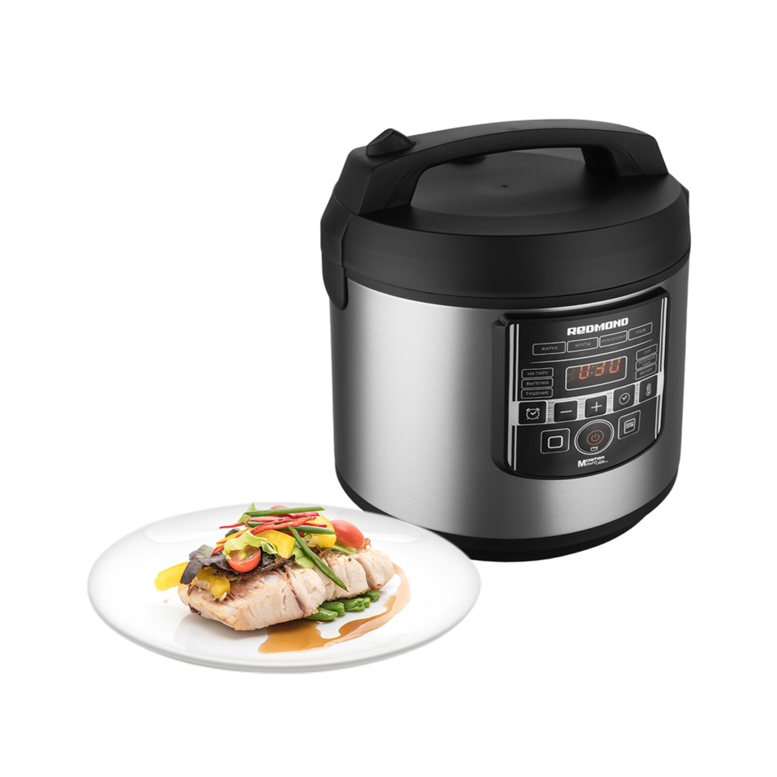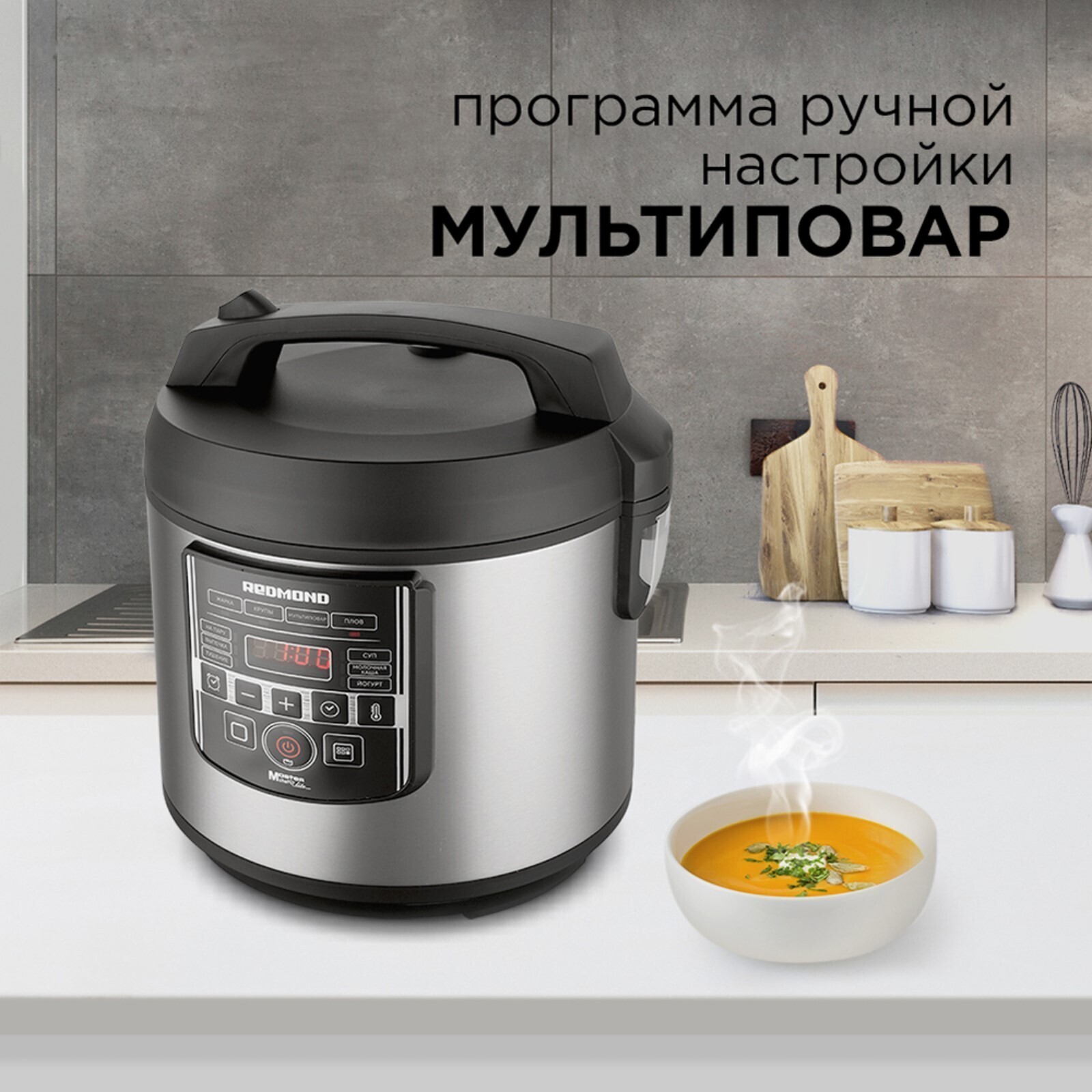 Мультиварка REDMOND RMC-M38, 860 Вт, 5 л, 10 программ, антипригарное покрытие, черная/сталь