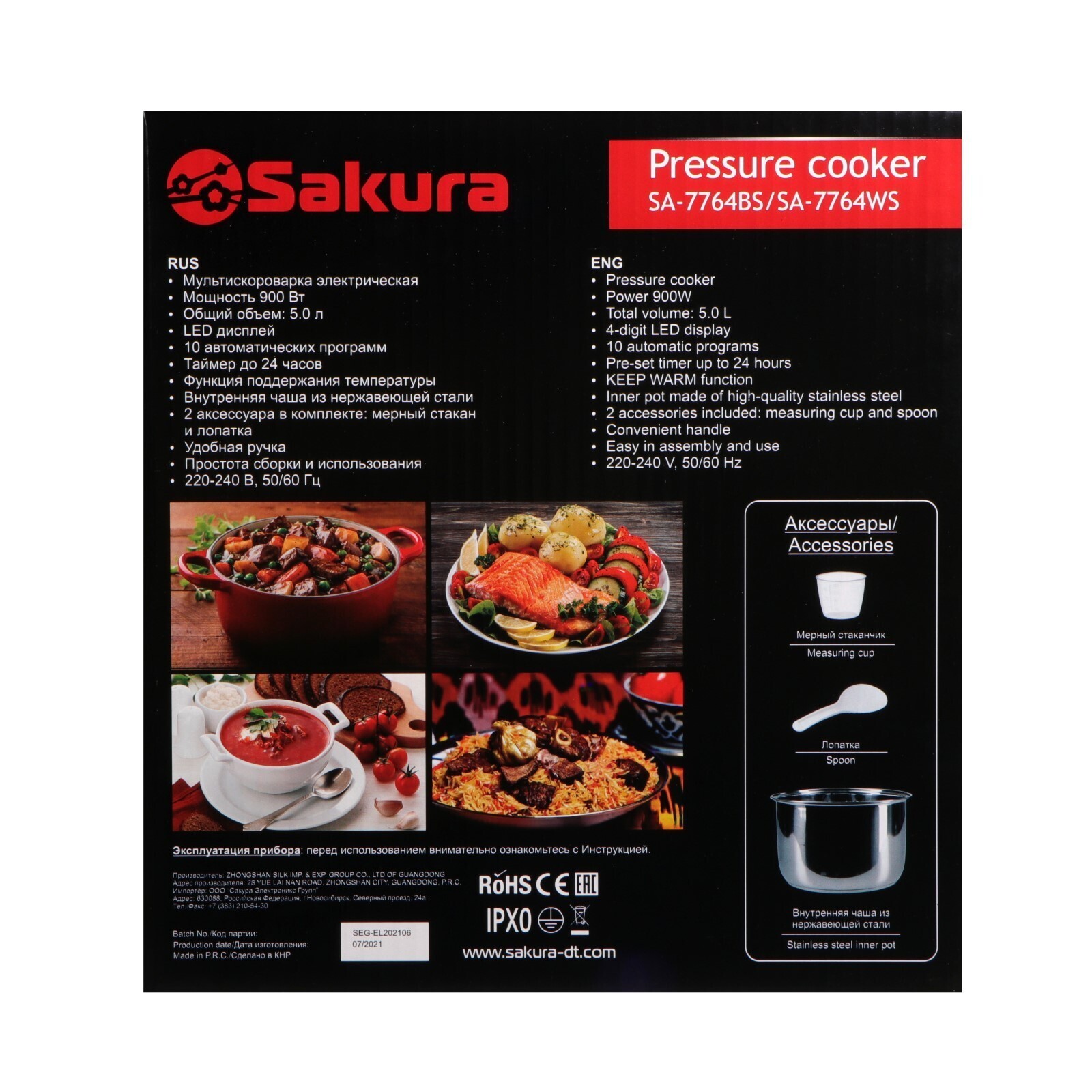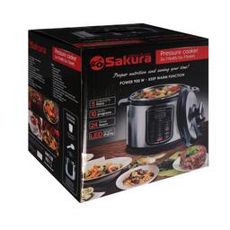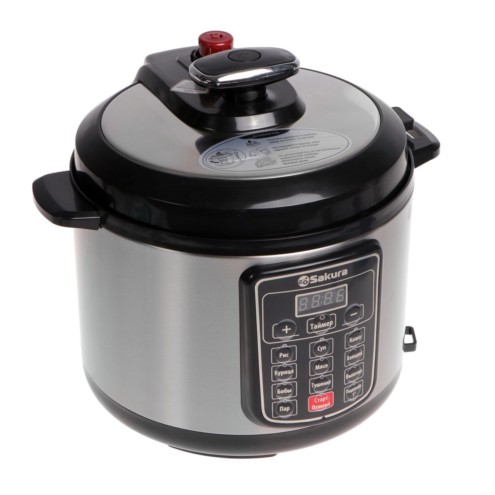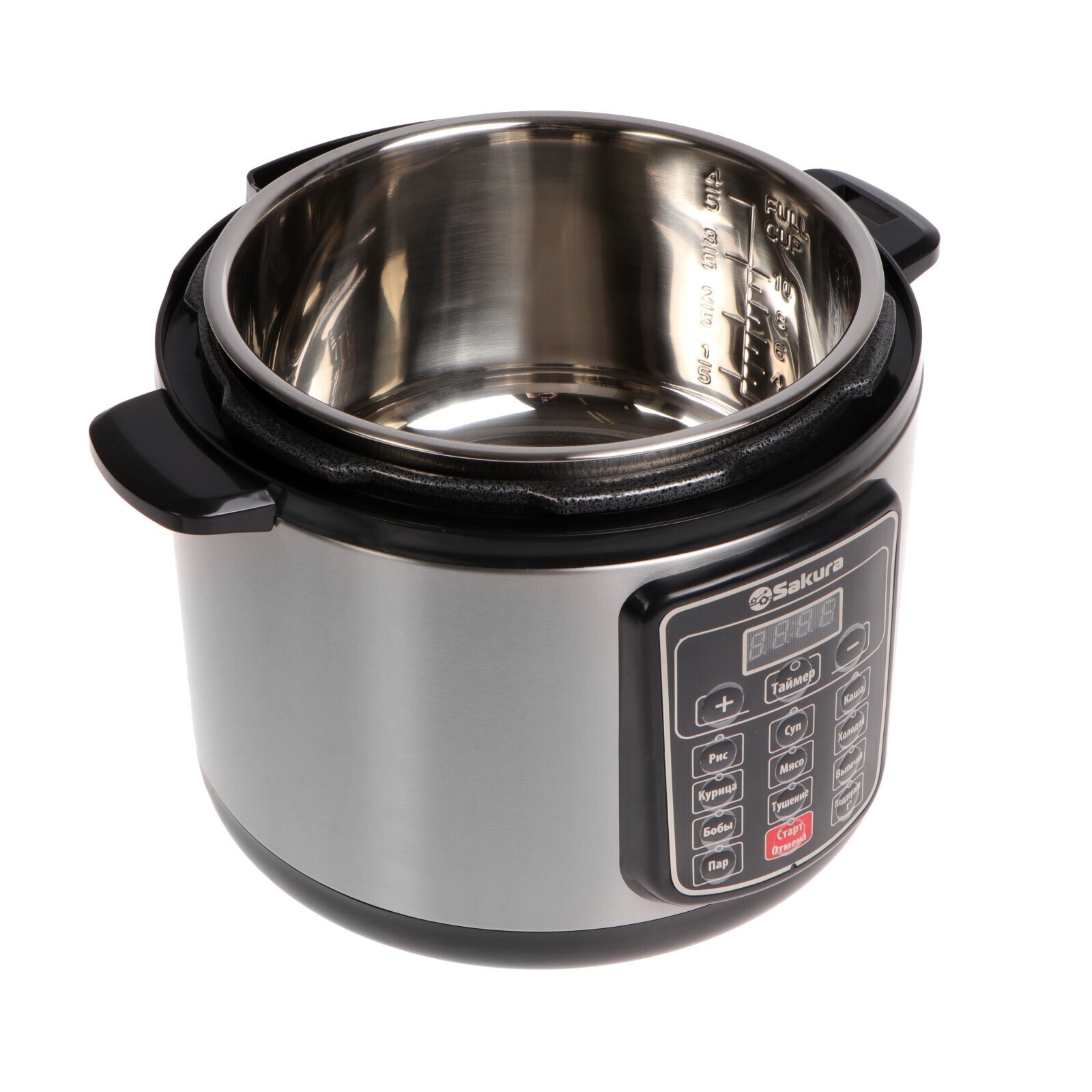 Мультиварка Sakura SA-7764BS. 900 Вт, 5 л, 10 программ, покрытие нерж.сталь, серо-чёрная