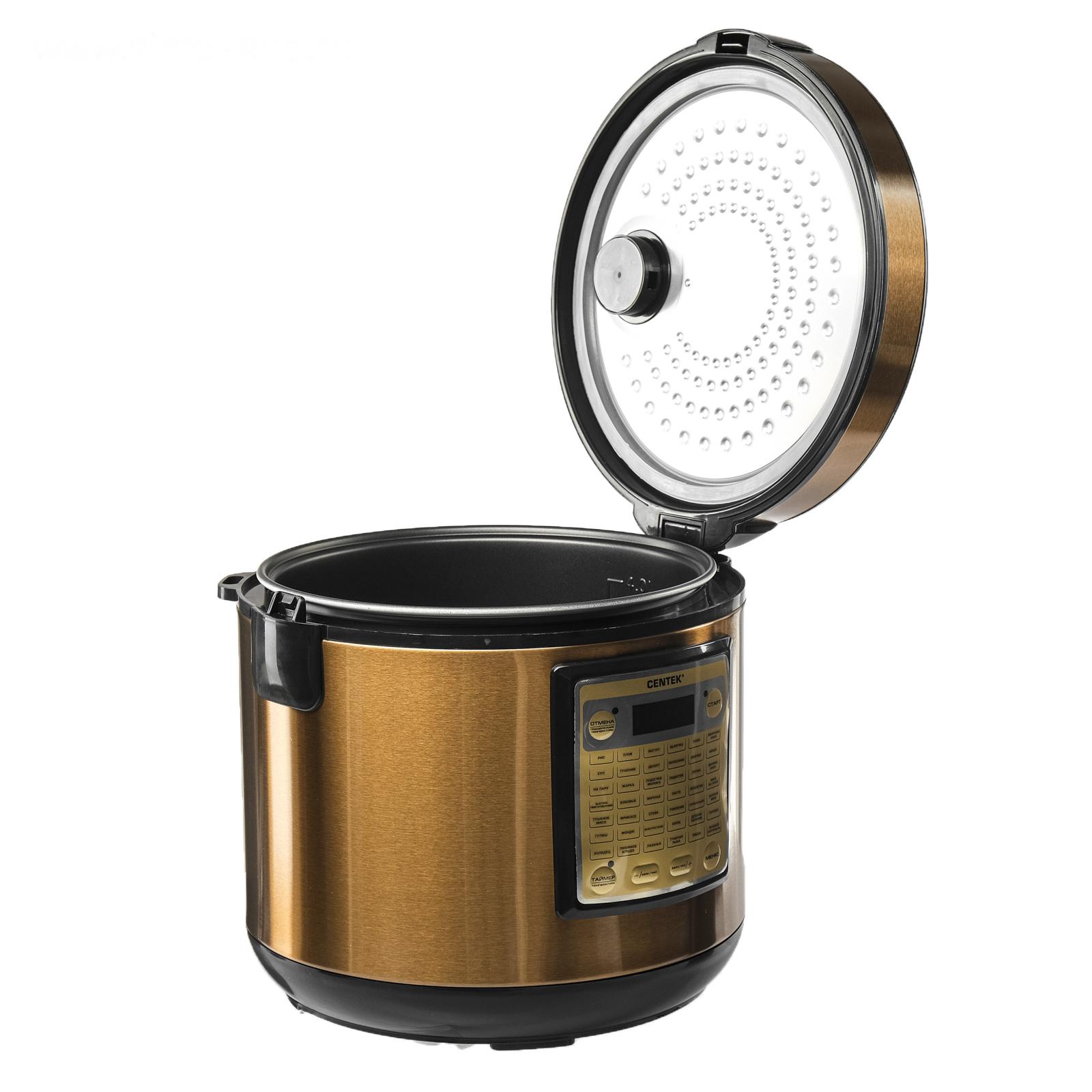 Мультиварка Centek оснащена антипригарным покрытием и 42 автоматическими программами. Вы можете установить приготовление блюда к вашему возвращению с помощью функции «Отложенный старт» до 24 часов. Еда остаётся горячей благодаря функции поддержания температуры.