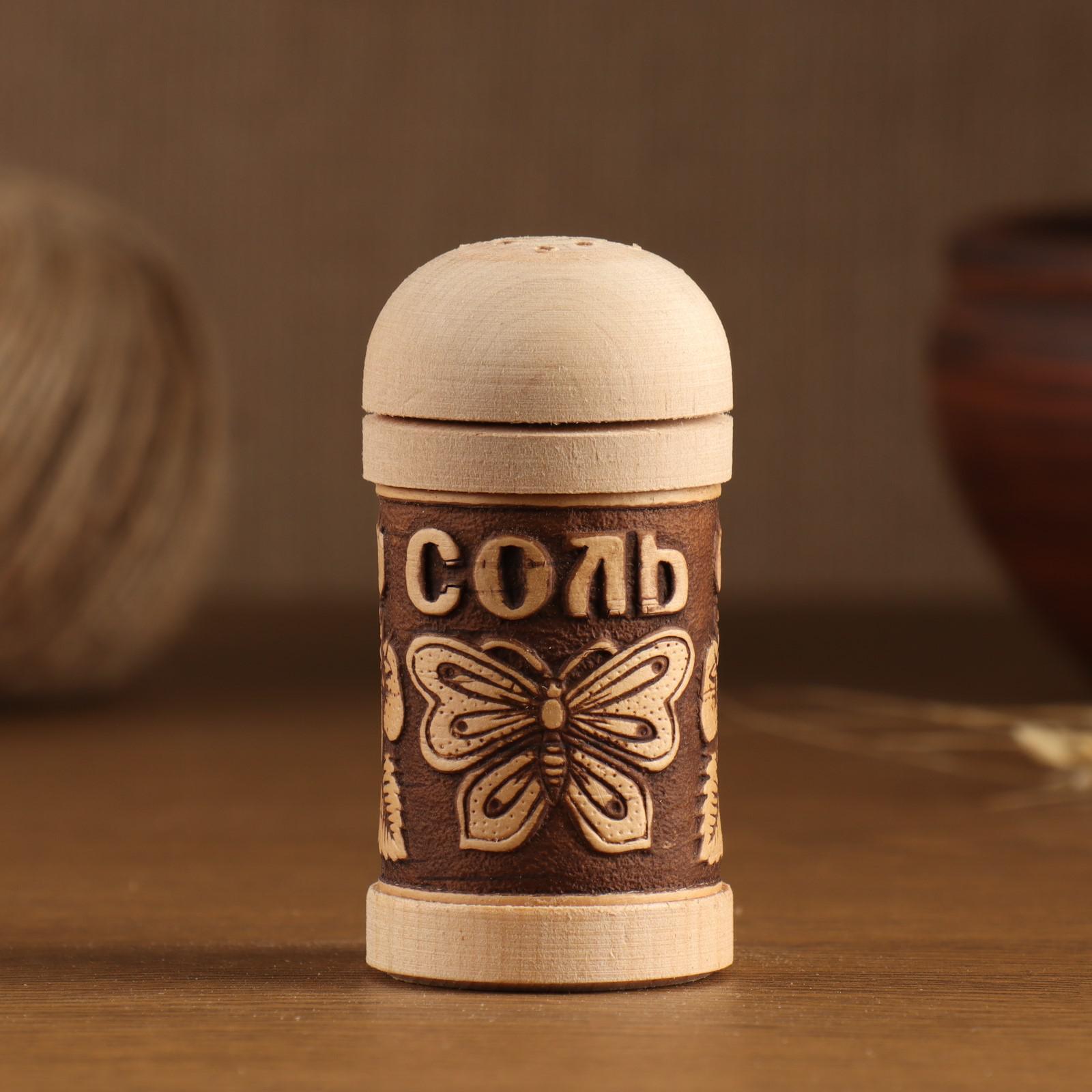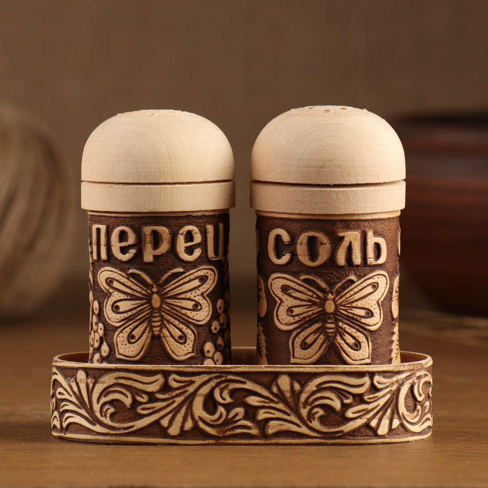 Набор для специй "Мотылек" соль-перец, 3пр.ёмкость4,5х9см, береста