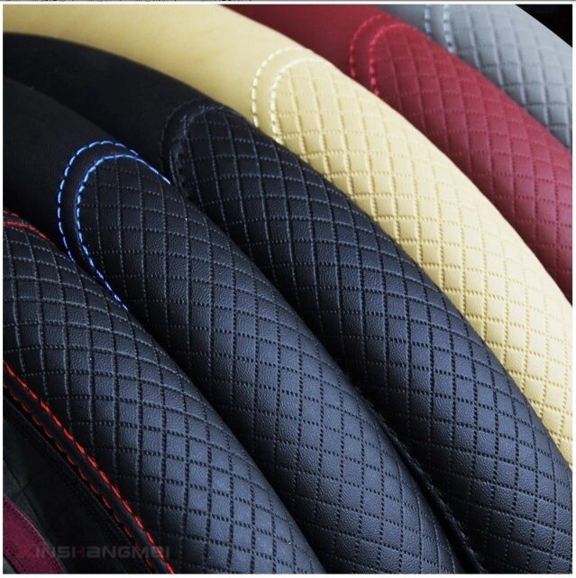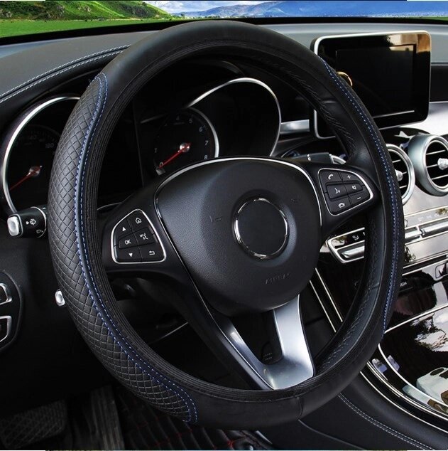 Оплетка - чехол на руль автомобиля классический, экокожа с перфорацией, М 37-39 см Бежевый