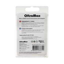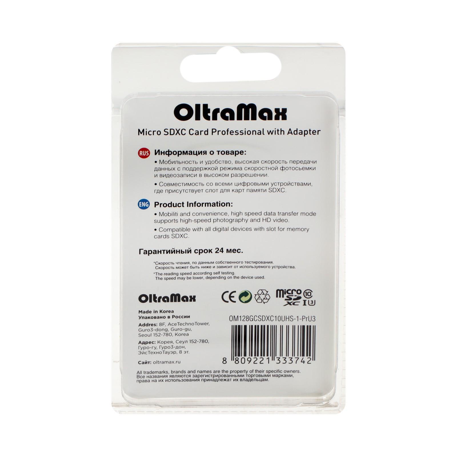 Карта памяти OltraMax MicroSD, 128 Гб, SDHC, UHS-1, класс 10, 95 Мб/с, с адаптером SD