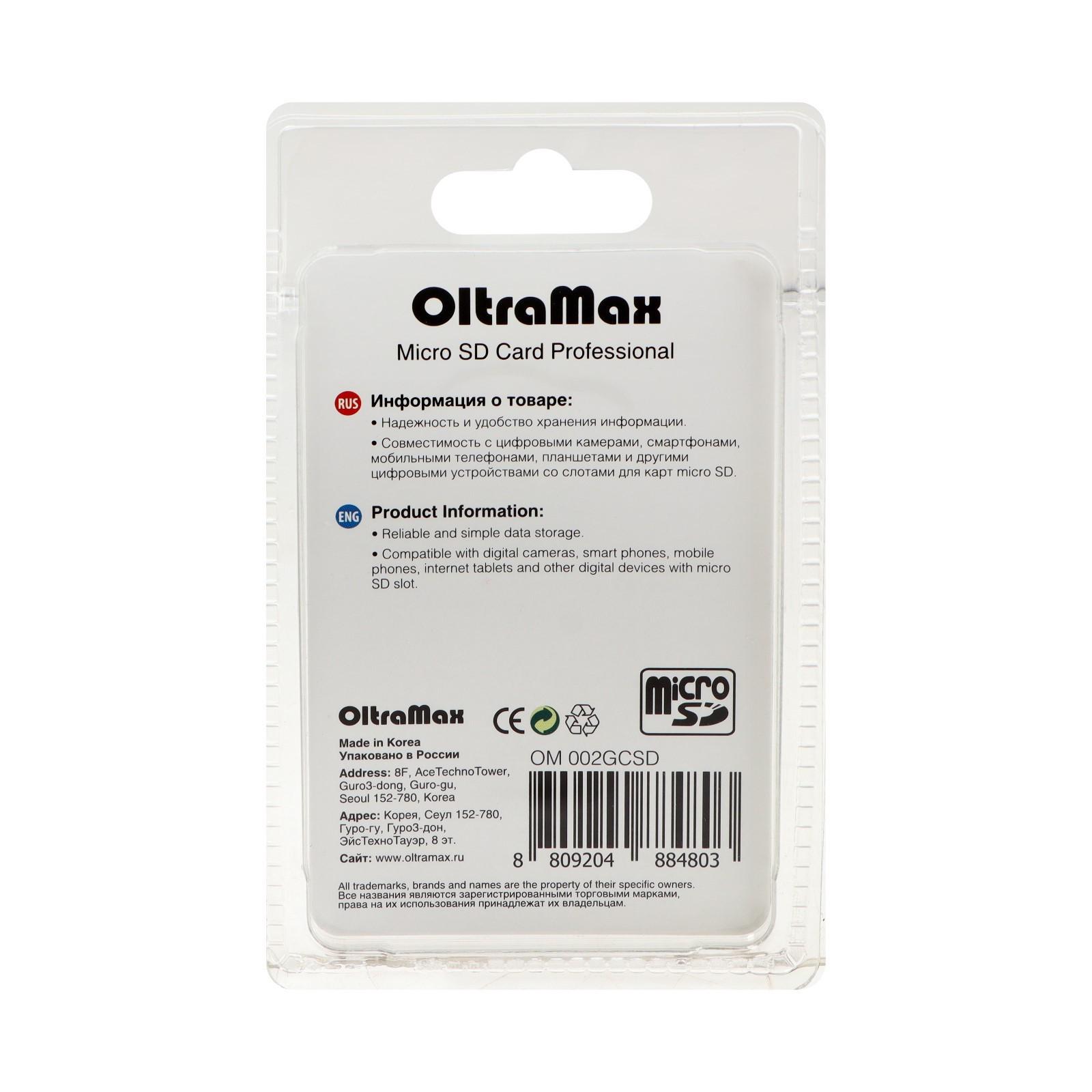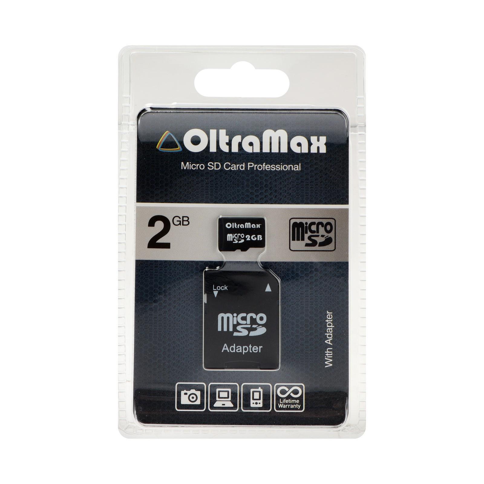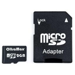 Карта памяти OltraMax MicroSD, 2 Гб, класс 2, с адаптером SD