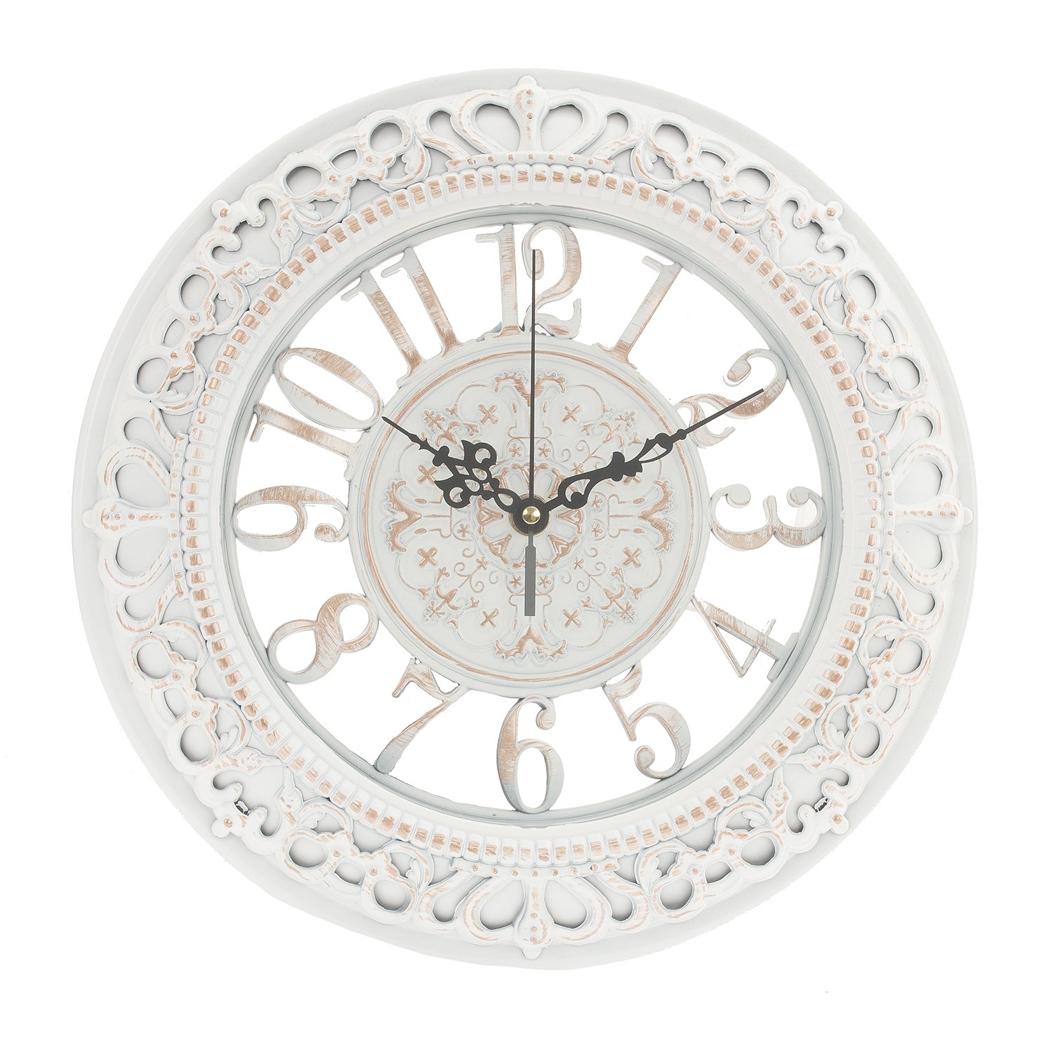 Часы настенные декоративные, круглой формы. Механизм: кварцевый. Цифры: арабские. Стрелки: часовая, минутная, секундная. Работают от одной батарейки АА (не прилаг.).