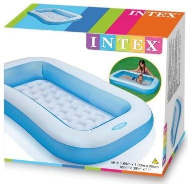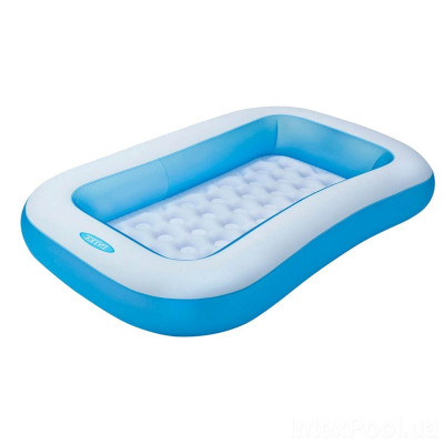Надувний басейн Intex 57403 прямокутний із надувним дном розміром 166х100х28 см. Басейн призначений для дітей від 3 років. Басейн зроблений із міцного вінілу, має надувне дно. Завдяки зручності та легкості транспортування басейн можна взяти із собою в подорож. Діти відчувають себе у цьому басейні краще, ніж у затишній домашній ванні.