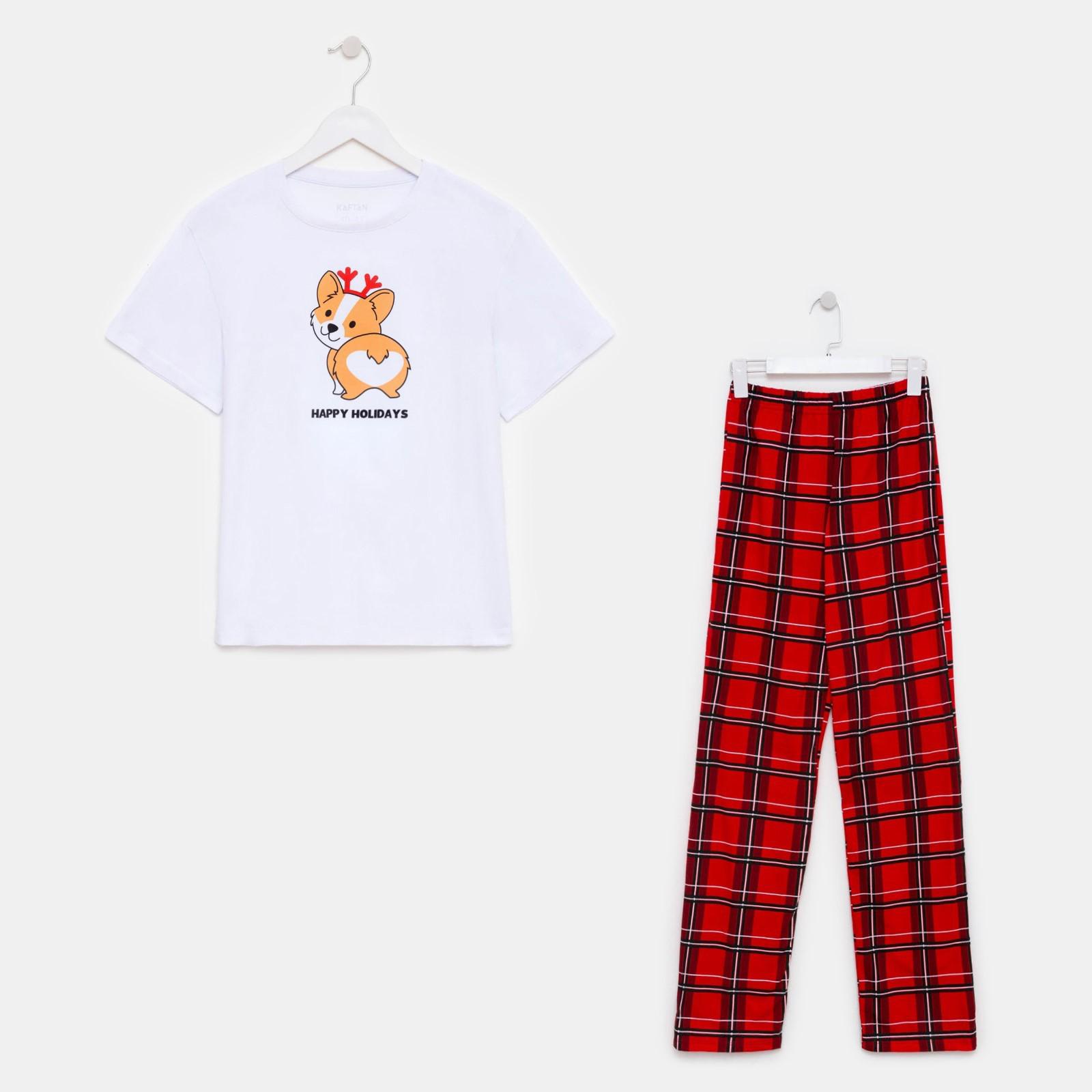 Пижама новогодняя женская (футболка и брюки) KAFTAN «Корги», размер 40-42