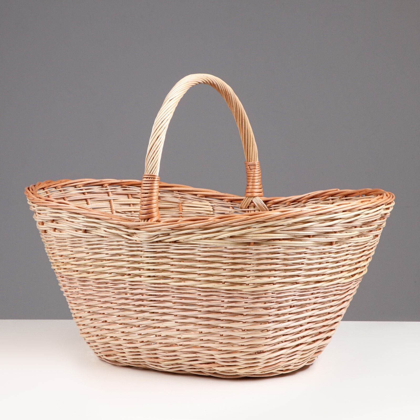 Плетёная корзина – выполнена из ивовой лозы. Имеет прочное основание и боковины, а также надёжные ручки. Ивовая лоза обработана специальным защитным средством и покрашена.