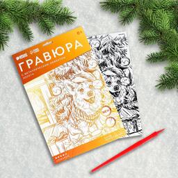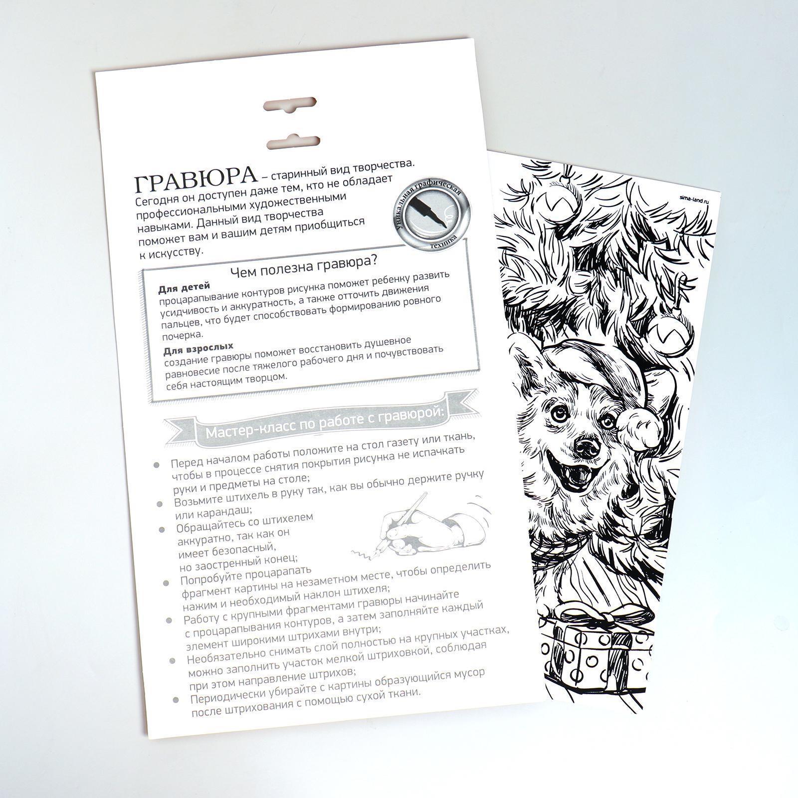 Чтобы создать новогоднюю картинку, достаточно процарапать намеченные контуры рисунка специальным инструментом — штихелем. И взрослый и ребёнок с удовольствием будет счищать верхний слой гравюры, под которым находится цветная основа, ведь это так увлекательно!