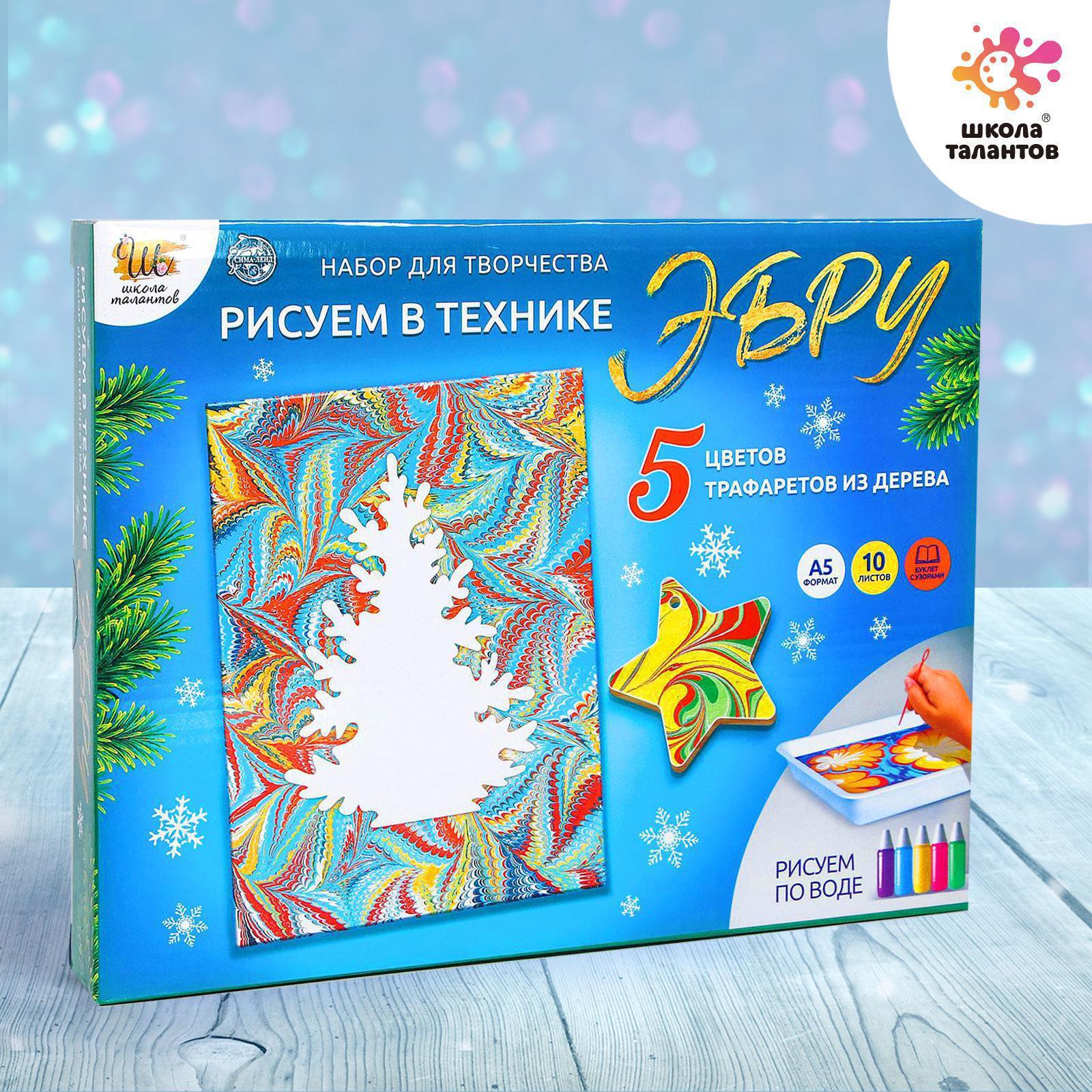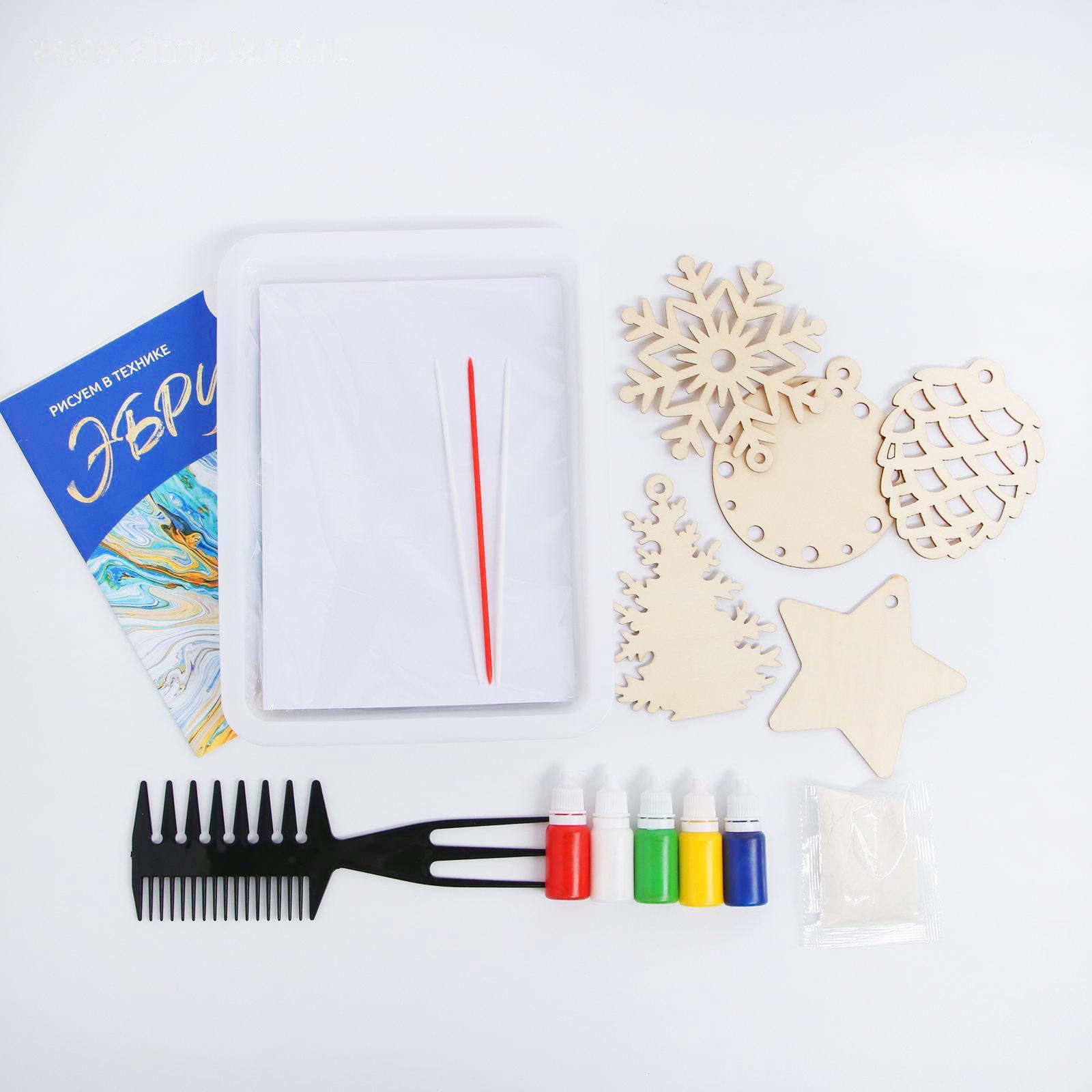 Набор для творчества «Рисуем в технике Эбру», А5 Новый год +5 ёлочных украшений
