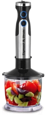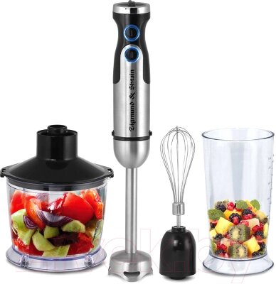 • В комплекте мерный стакан, измельчитель, венчик, блендер для смузи