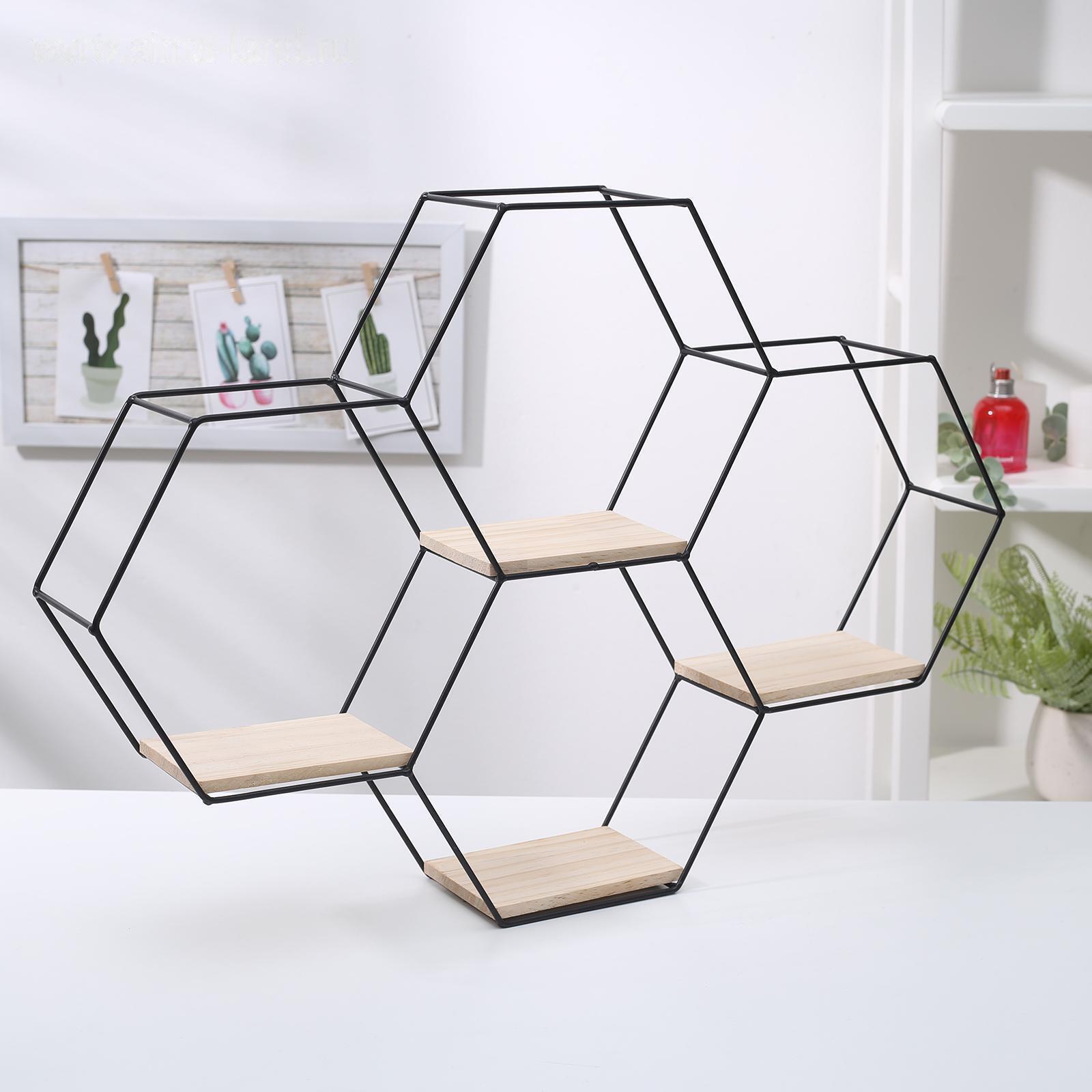 Полка 2-х ярусная Доляна «Лофт», 41×59×9,5 см, цвет чёрный