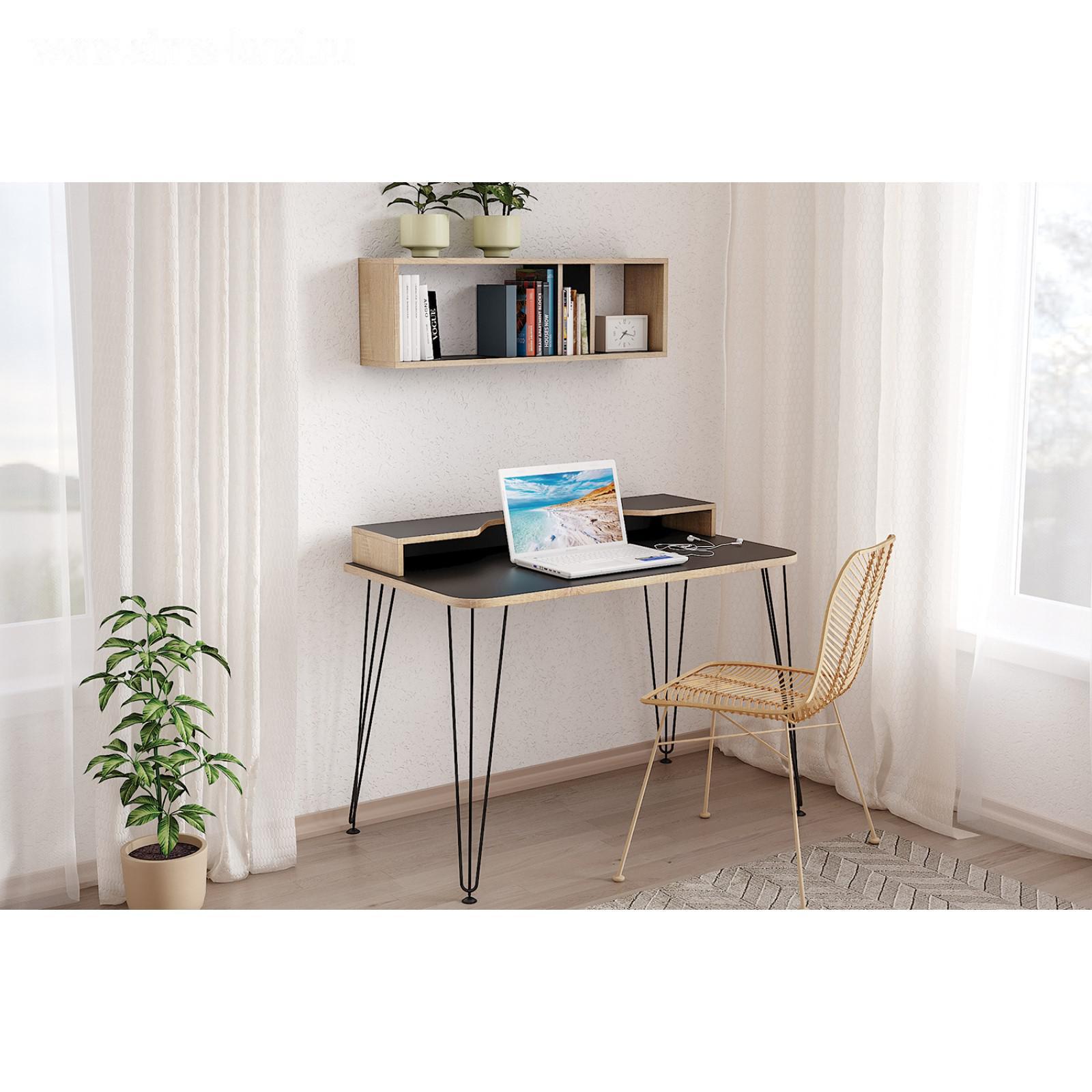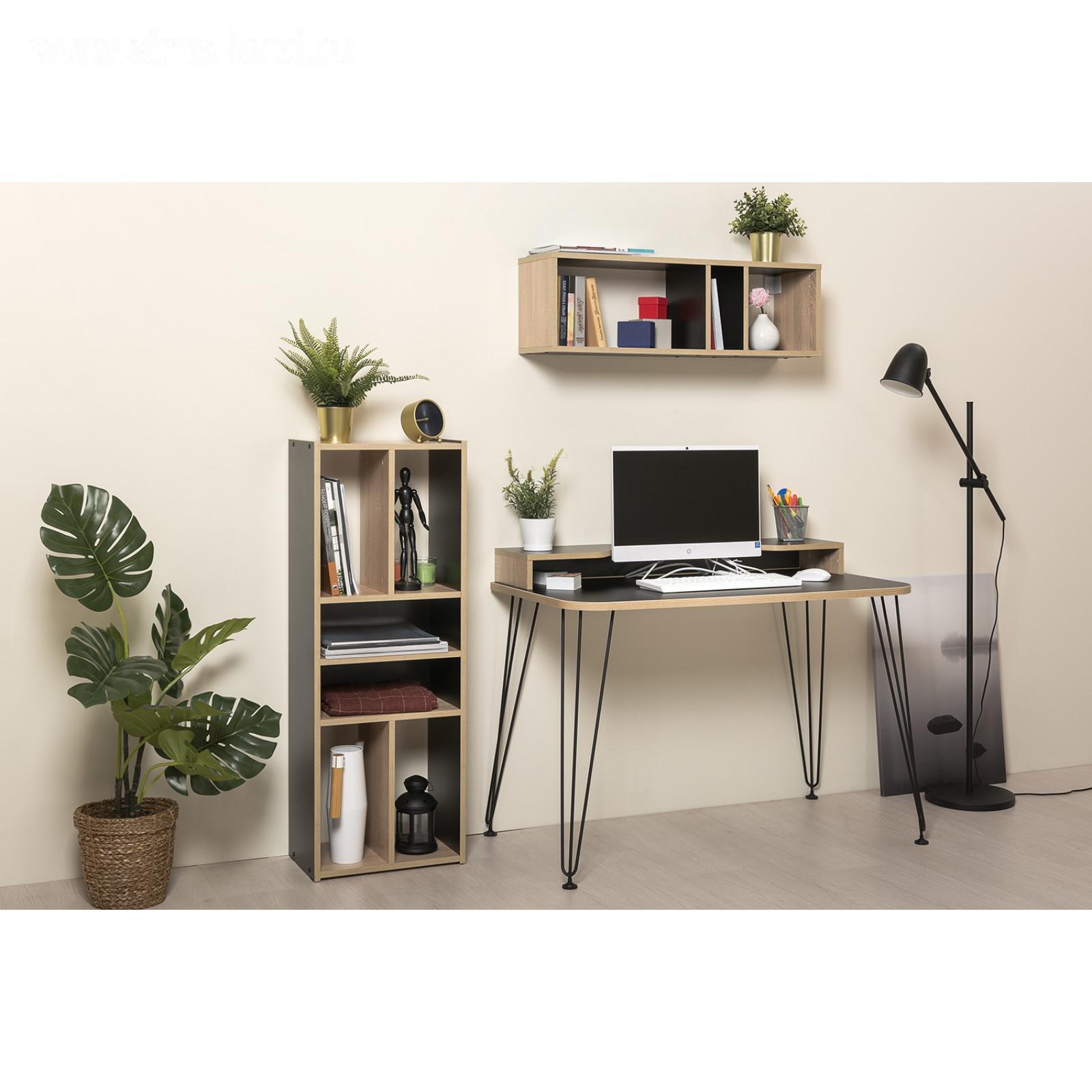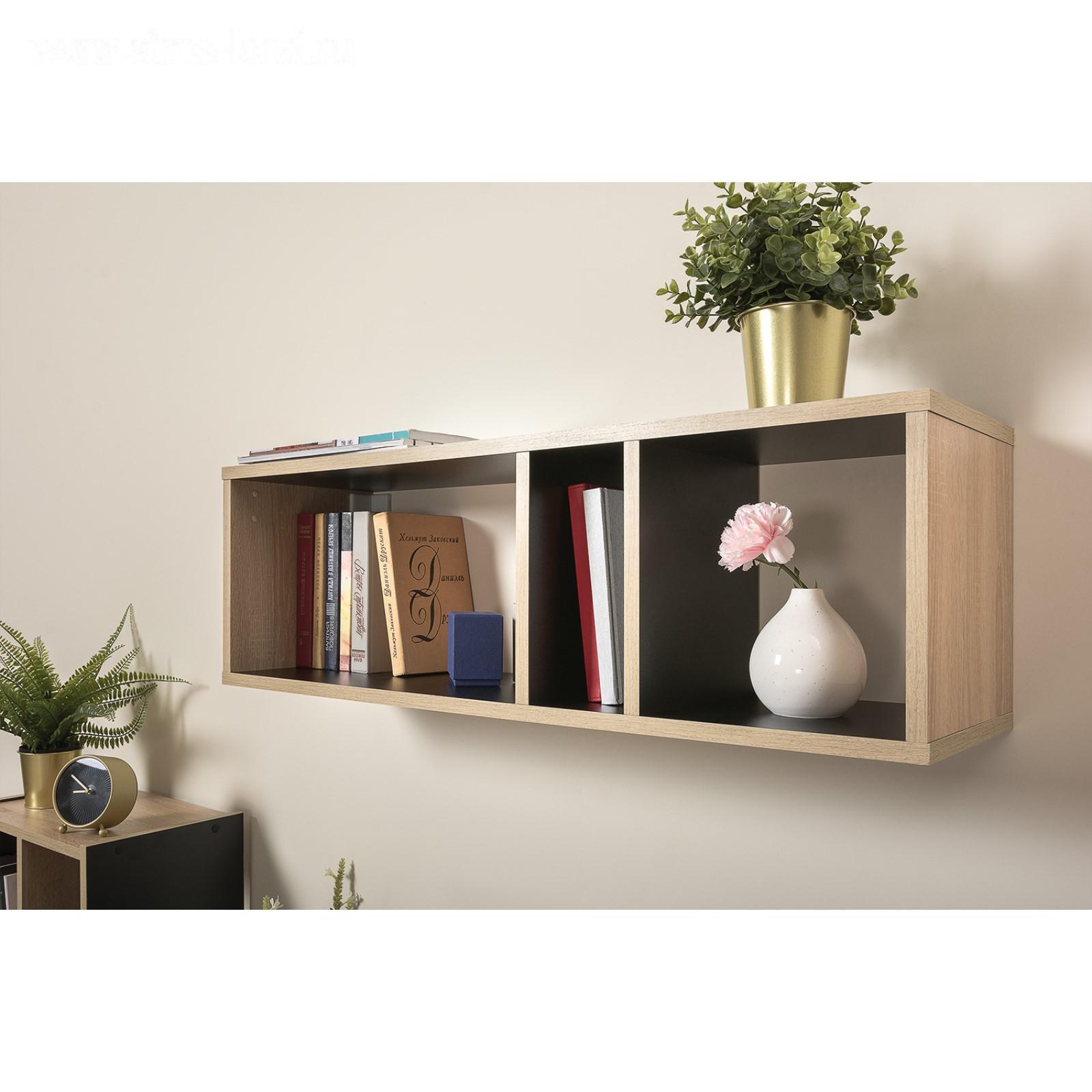 Полка навесная Базис 3 09.127, 890х242х278, Черный/Дуб сонома