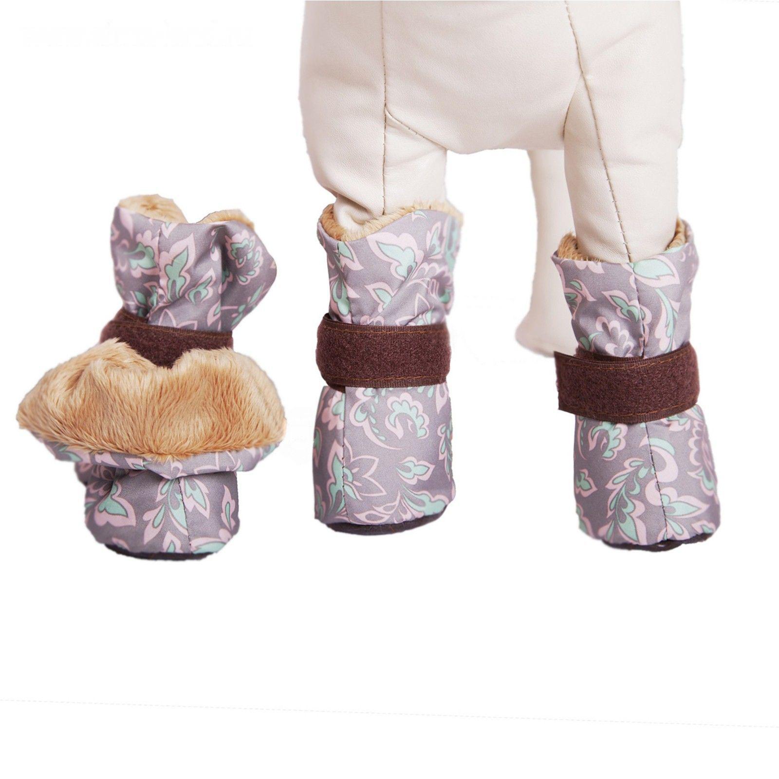 Модные тёплые ботиночки из синтетического материала с водоотталкивающей пропиткой и подкладкой из мягкого плюшевого искусственного меха предназначены для защиты чувствительных лапок самых маленьких собак от холода и грязи, соли и реагентов, которые могут встретиться на дороге. Подошва утеплена синтепоном, поэтому животное будет чувствовать себя комфортно даже при крайне низкой температуре.