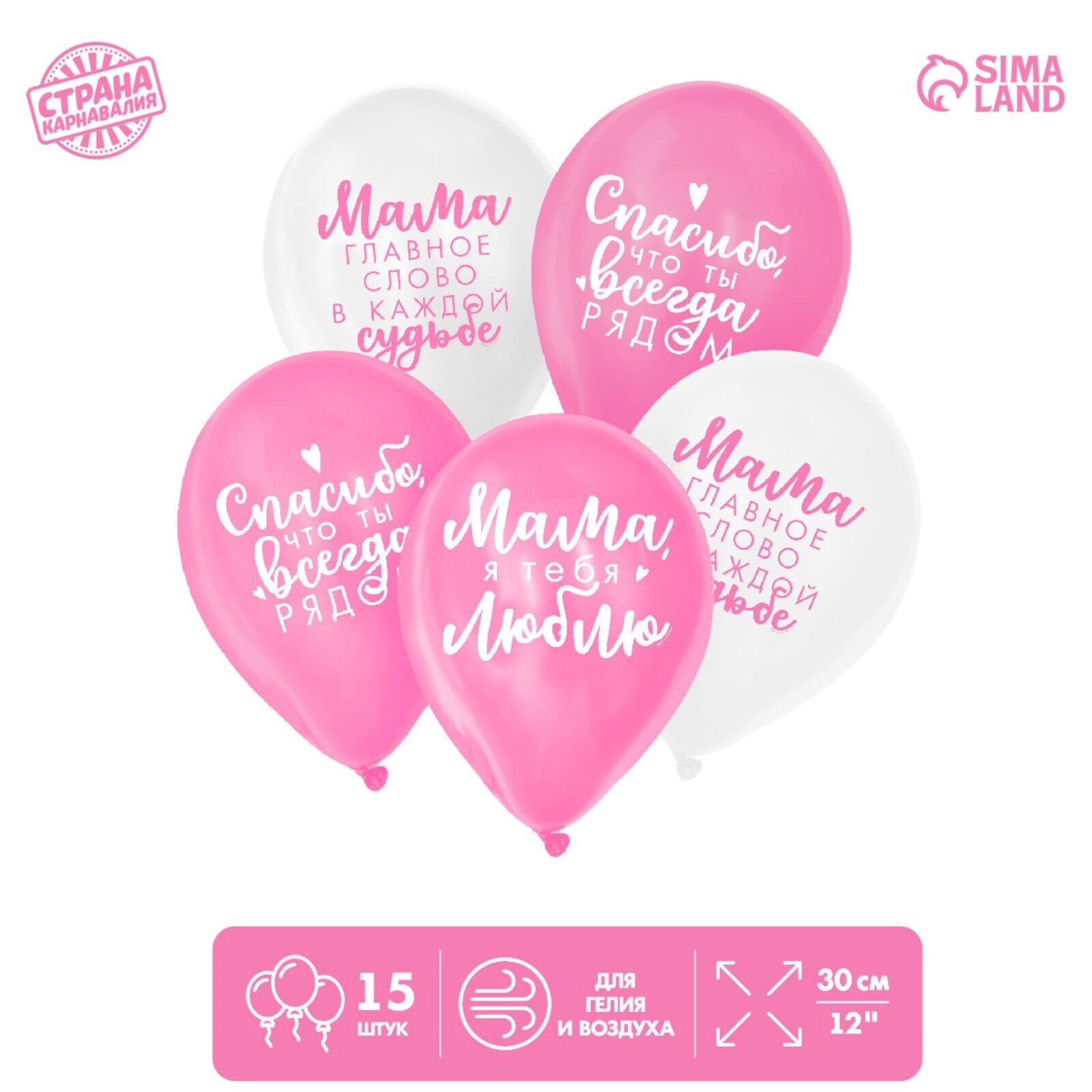 Шар воздушный 12 «Комплименты мамочке», 1 ст., картинки МИКС, 15 шт