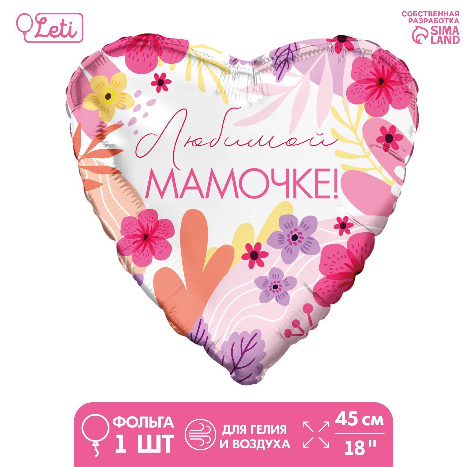 Фольгированный шар 18" «Любимой мамочке» сердце, с подложкой