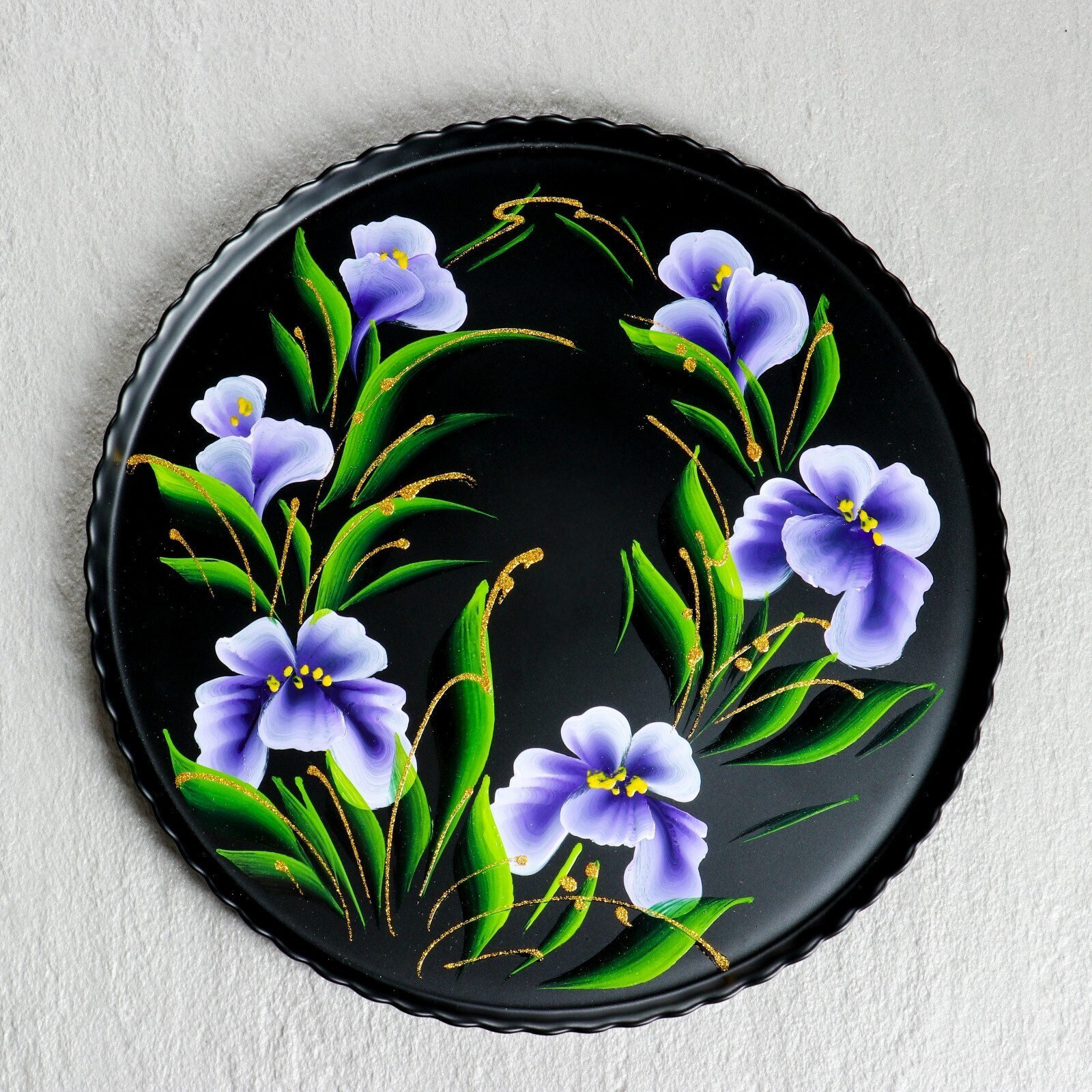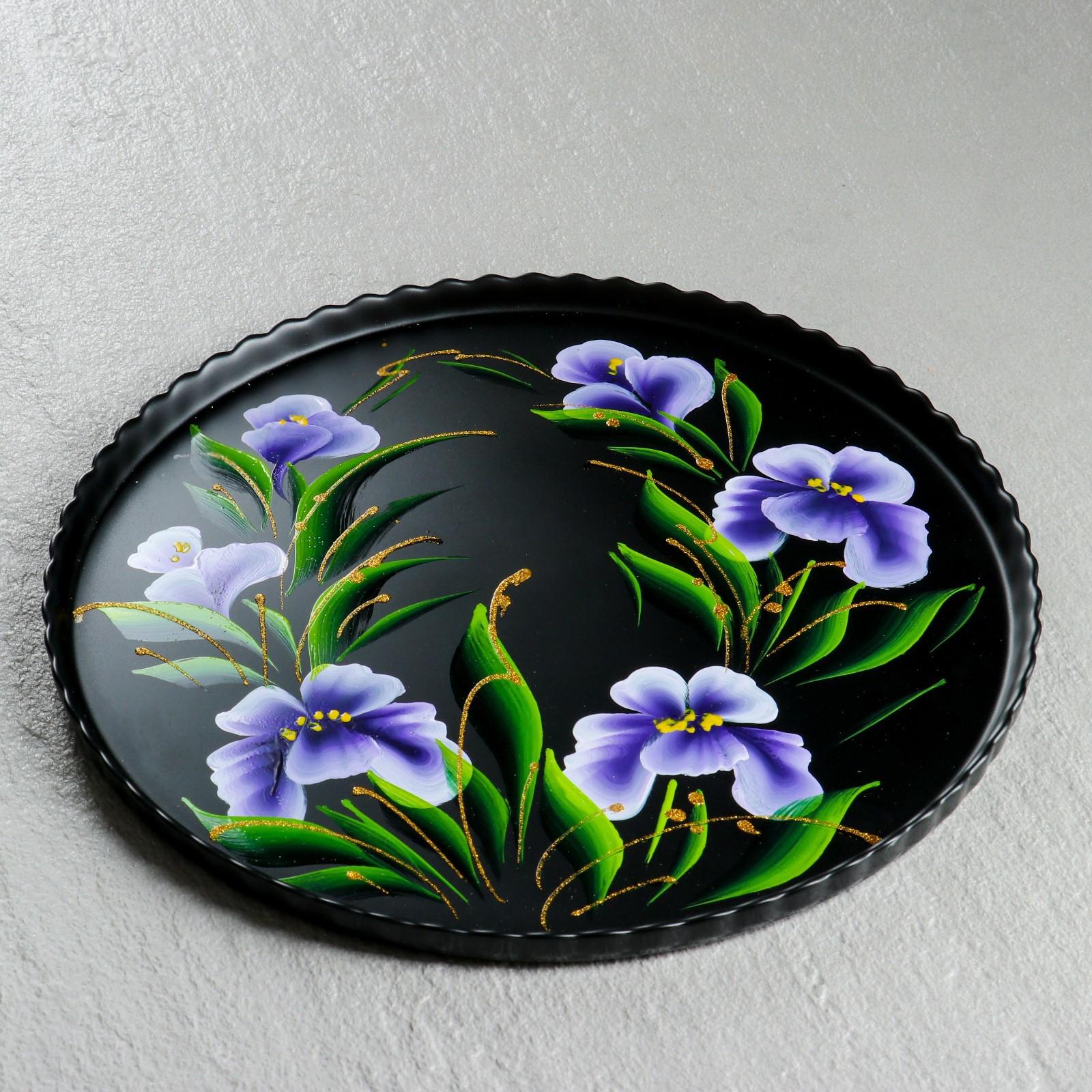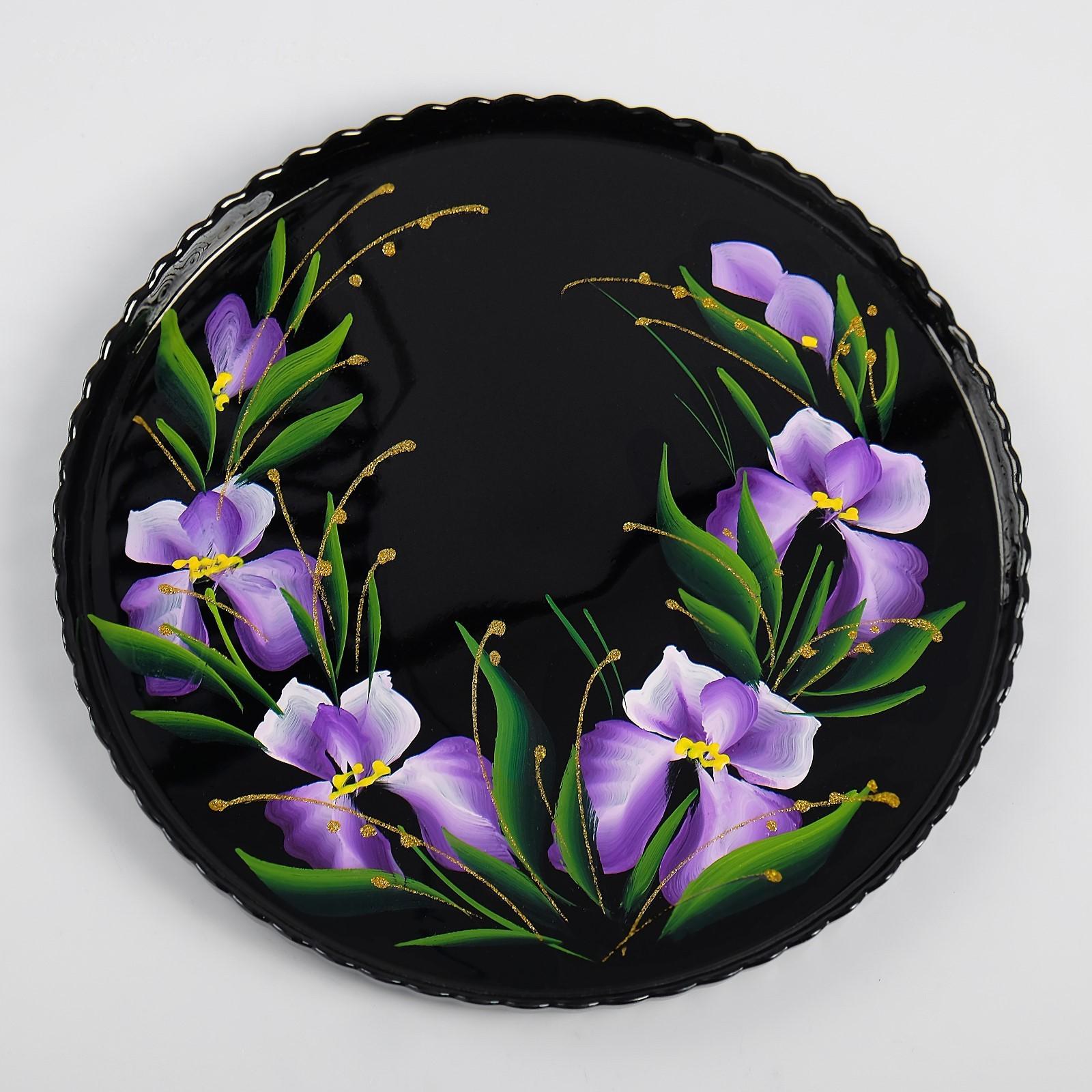 Поднос "Ирис на чёрном" художественная роспись 28 см