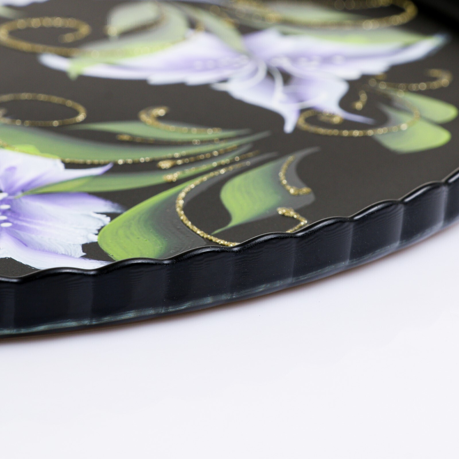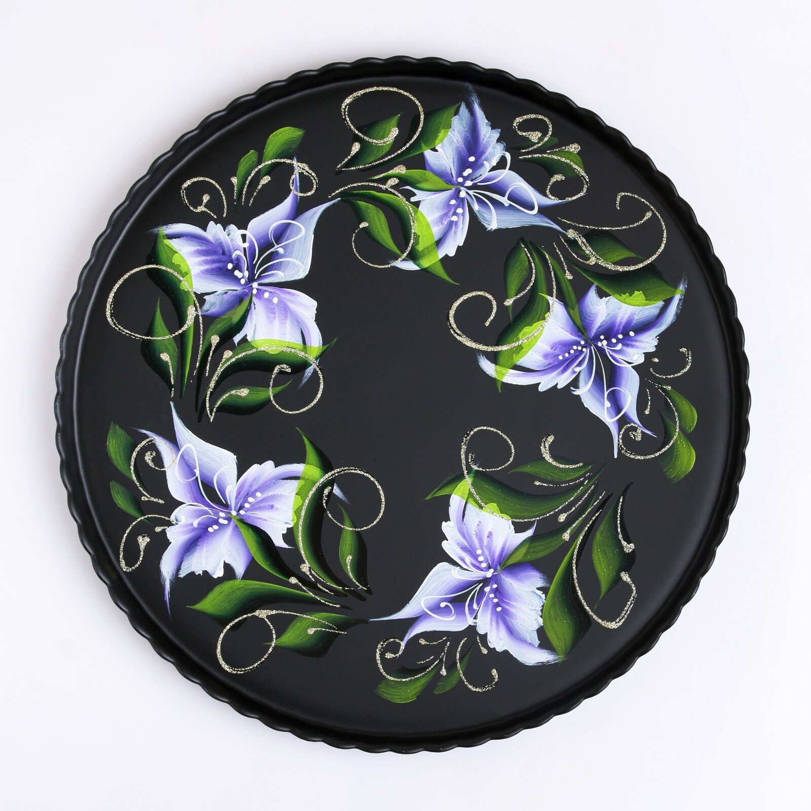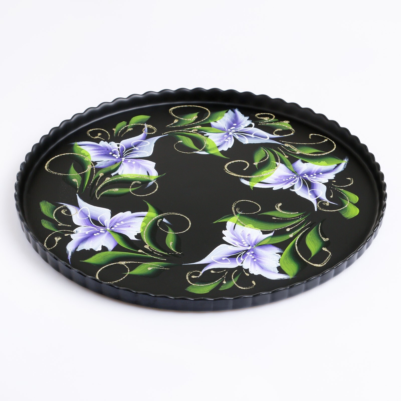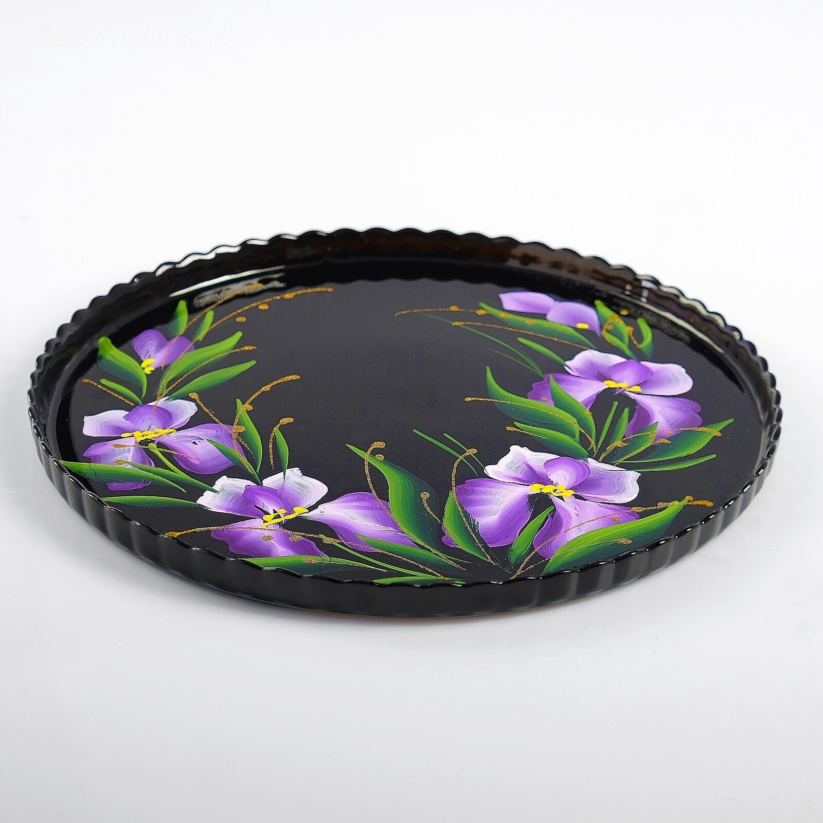 Поднос "Ирис на чёрном" художественная роспись 28 см