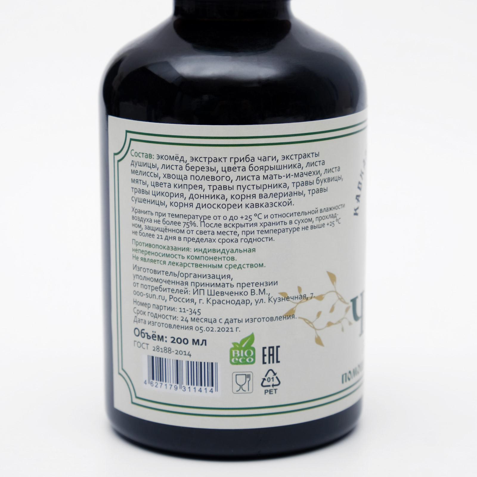 Эликсир "Кавказский целитель с Чагой", помощь при давлении, 200 мл