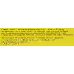 Состав: экомёд, экстракты травяные: трава астрагала, пустырника, буквицы, желтушника серого, мяты, манжетки, душицы, руты, адониса, вербены, цветы календулы, вереска, боярышника, лабазника (таволги), земляники лист, березы лист, барвинок малый, цикория корень, боярышника плоды, валериана корень.