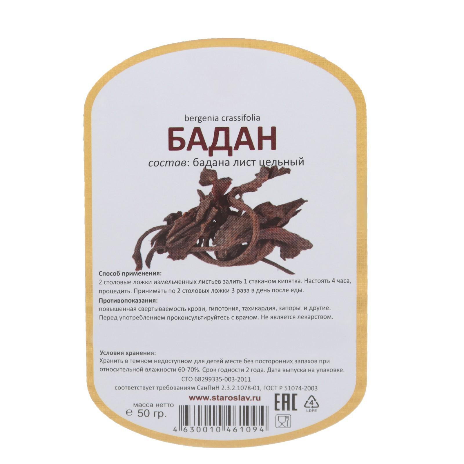Большое количество Дубильных веществ приводит к тому, что при длительном употреблении, при всех своих положительных эффектах, бадан может вызывать и неприятные последствия в виде возникновения запоров. Его следует с осторожностью принимать тем, кто склонен к низкому давлению - так как бадан может понизить его еще сильнее. Поэтому при оздоровлении с помощью бадана следует внимательно контролировать и регулярно измерять показатели артериального давления. Нежелательно применять бадан при склонности к тахикардии - препараты бадана могут усилить частоту пульса. Противопоказанием к приему является склонность к образованию тромбов. Ни в коем случае нельзя применять зеленые листья бадана, так как они содержат ядовитые вещества. что бадан может употребляться как полезный напиток, знают далеко не все: в некоторых случаях бадан выращивается всего лишь в качестве декоративного растения, украшающего сады и приусадебные участки.